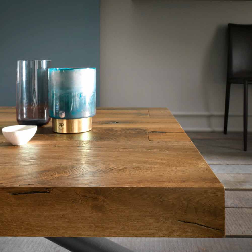Massivholz : Es ist der Holzanteil, der aus dem ganzen Stamm, Kernholz und Splintholz gewonnen wird. Das Ergebnis ist ein 100% natürliches Material, aber auch ein kostbares Einzelstück .