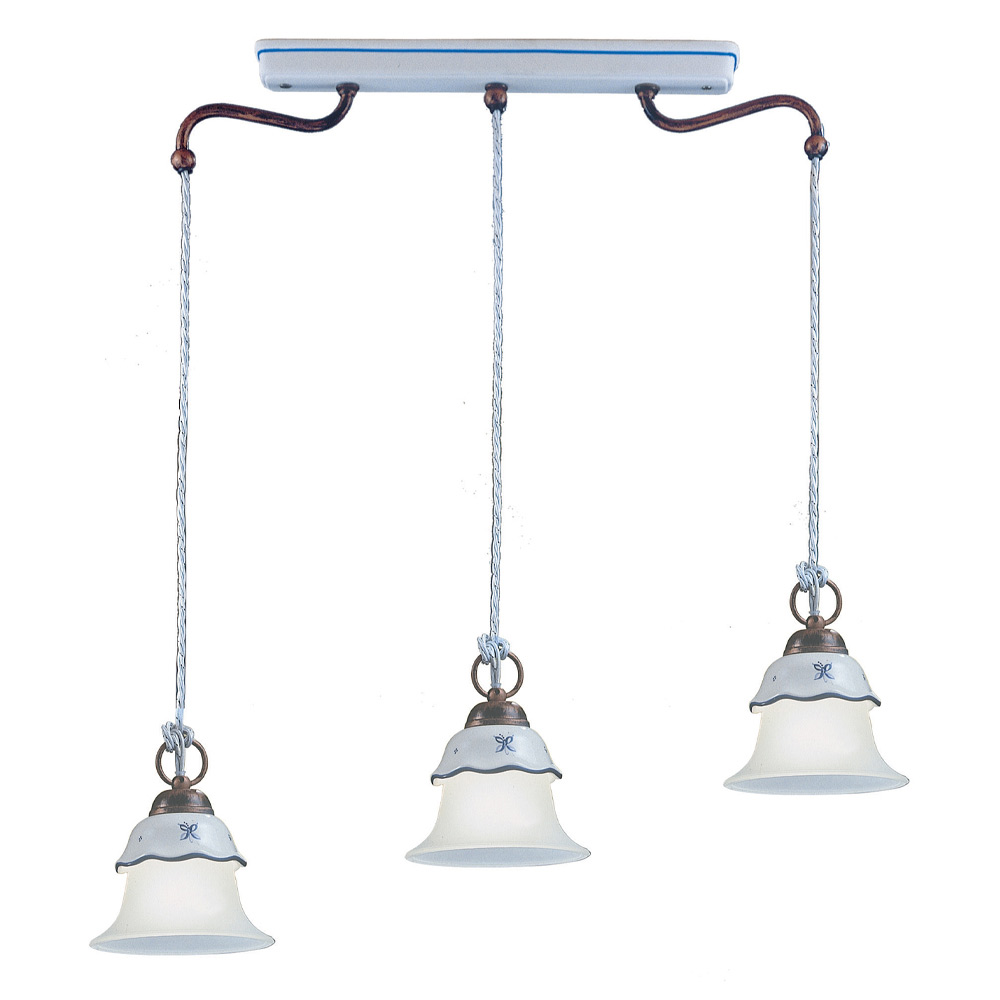 Vintage 3-Licht-Hängelampe aus Eisen, Glas und Keramik - Ferrara