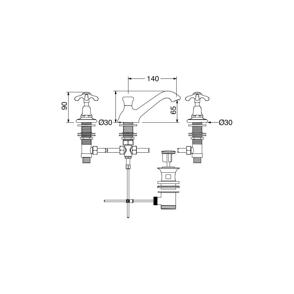 Klarisa è ein raffiniertes Batterie 3-Loch Waschbecken mit Ablauf.