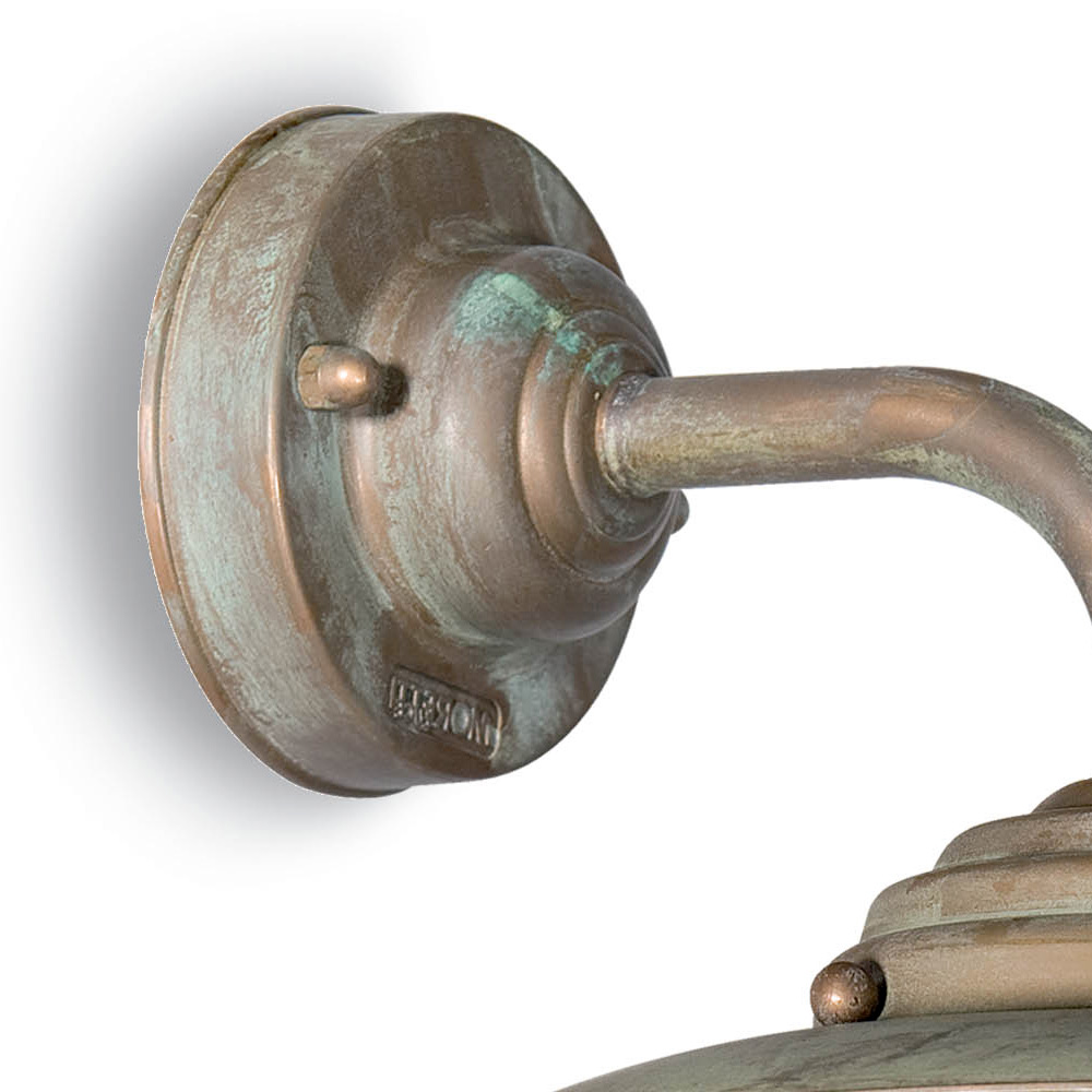 Authentisch und zeitlos – diese Außenwandleuchte erinnert an den Charme traditioneller Laternen und interpretiert ihn elegant neu. Die handgefertigte Messingstruktur besticht durch ihre antike Oberfläche , die die Materialität des Metalls hervorhebt und einen edlen, wohnlichen Look verleiht.