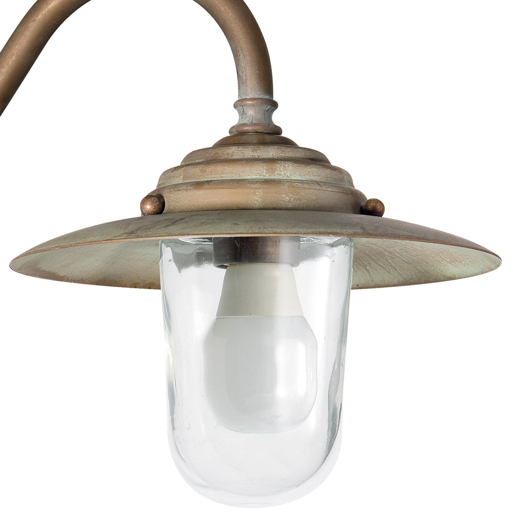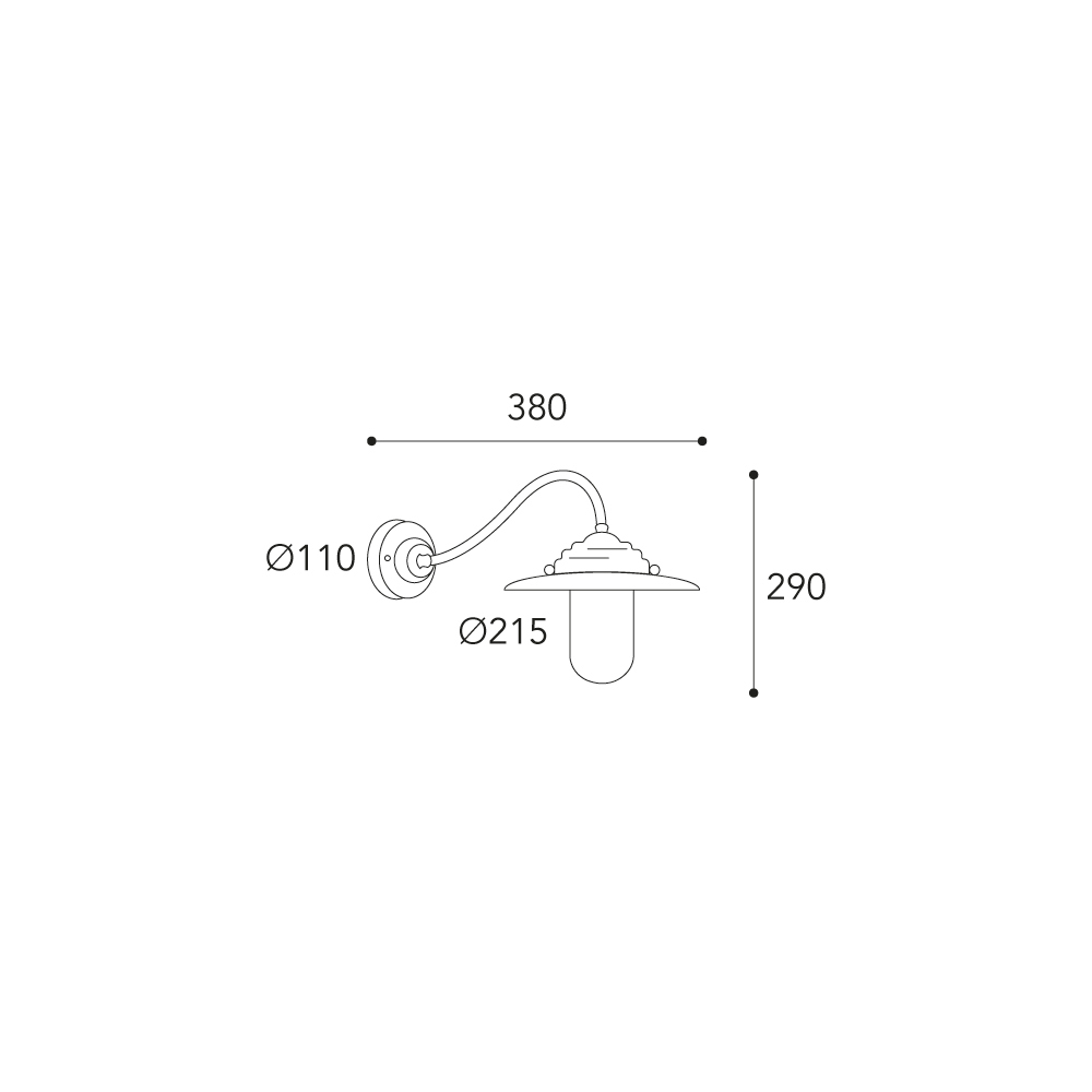 Der geschwungene Arm und der Metallschirm erinnern an den Stil traditioneller Außenleuchten und wurden elegant neu interpretiert, um Fassaden , Veranden , Terrassen und Eingänge zu verschönern. Eine ideale Lösung für klassische , rustikale oder architektonisch anspruchsvolle Umgebungen.