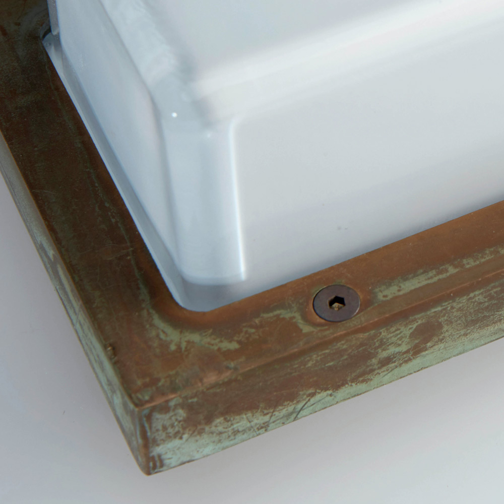 Diese schlichte und elegante, handgefertigte Wandleuchte ist eine raffinierte Beleuchtungslösung, die moderne Wände und zeitgenössische Räume perfekt in Szene setzt. Die Struktur aus Messingdruckguss in Kombination mit einem rechteckigen Diffusor aus Opalglas erzeugt ein weiches, gleichmäßiges Licht – ideal für eine einladende und zugleich funktionale Beleuchtung.