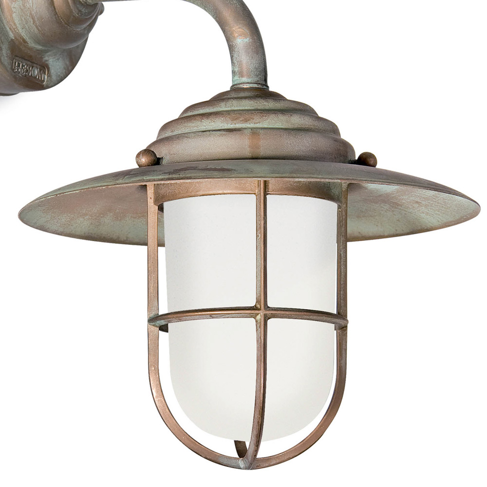 Antike Messing-Außenwandleuchte mit Opalglas