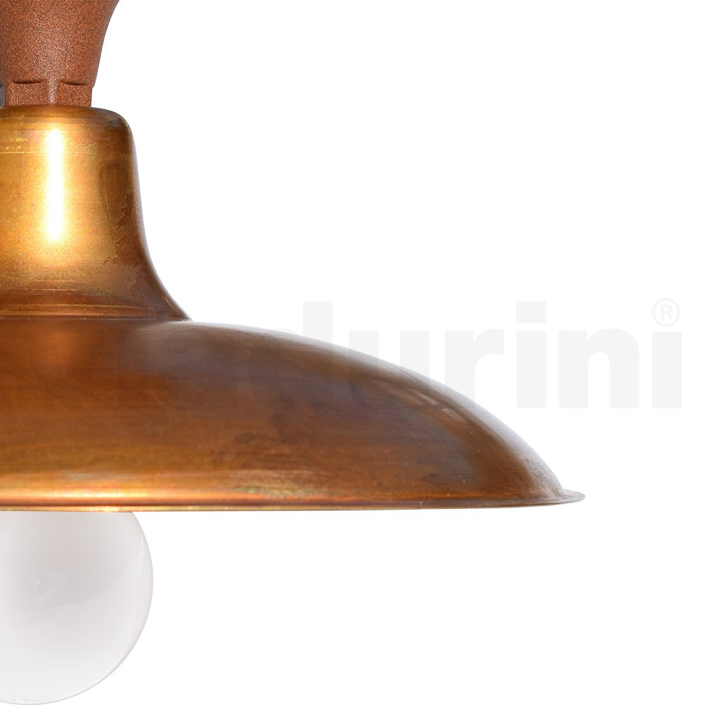 Deckenleuchte für den Außenbereich mit Struktur aus Aluminiumdruckguss und Diffusor aus natürlichem Messing (Durchmesser 260 mm) vollständig in Italien hergestellt . Komplett mit Edelstahlschrauben und Silikondichtung für besseren Schutz. Eine Einrichtungsidee, die Funktionalität und Eleganz dank ihrer Ästhetik vereint, die von raffinierten Merkmalen und Dekorationen mit einer antiken Persönlichkeit geprägt ist, die ihre Einzigartigkeit unterstreichen und sie perfekt für die sorgfältige Einrichtung jedes Außenbereichs machen. Ideal für Umgebungen wie Gärten, Innenhöfe, Alleen und Gehwege, aber auch für gewerbliche Räume wie Bars und Restaurants.