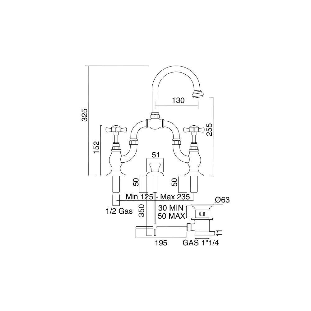 Vintage Design Bridge Waschbeckengruppe aus Messing Made in Italy - Katerina