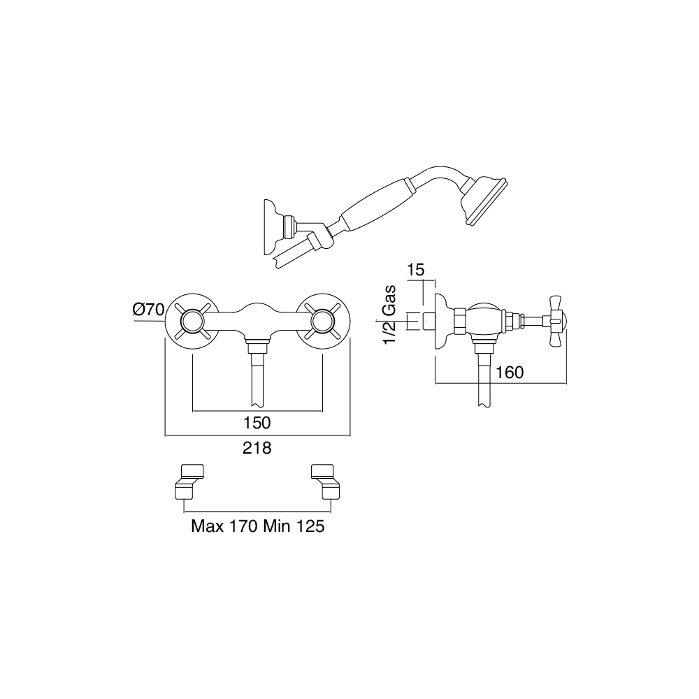Duscheinheit mit Handbrause, Schlauch und Haken. Gekennzeichnet durch eine zeitlose Eleganz, wird es Ihr Badezimmer mit einem Vintage-Stil einrichten, der nie aus der Mode kommt.