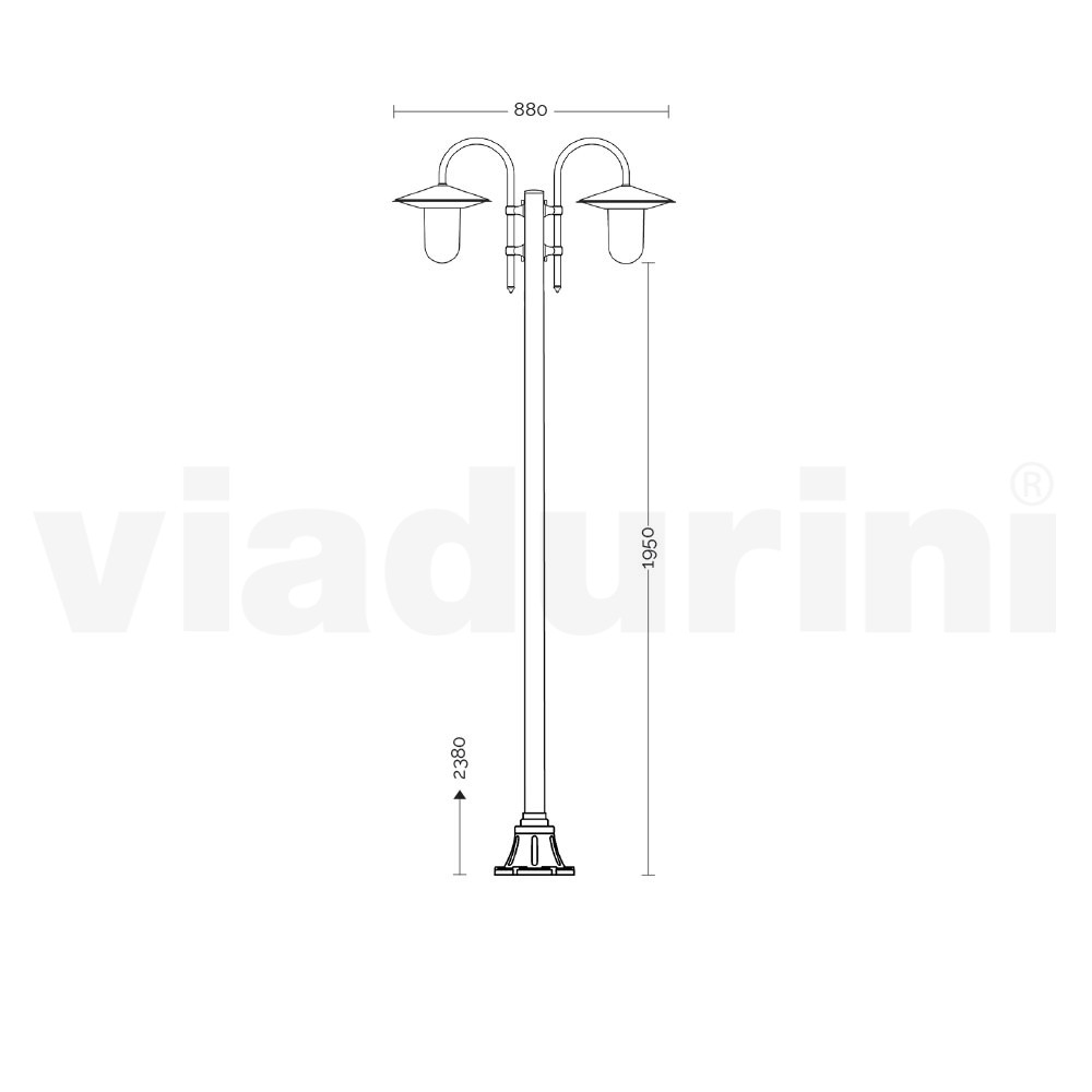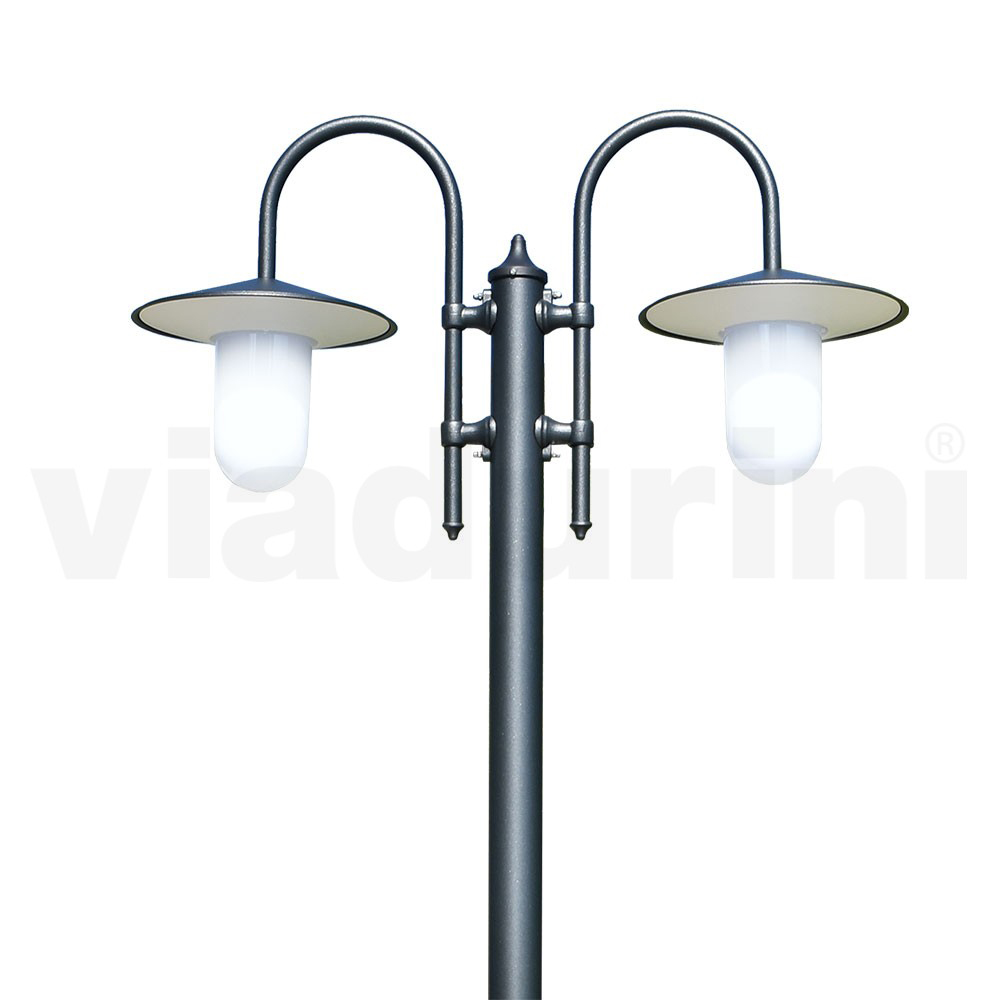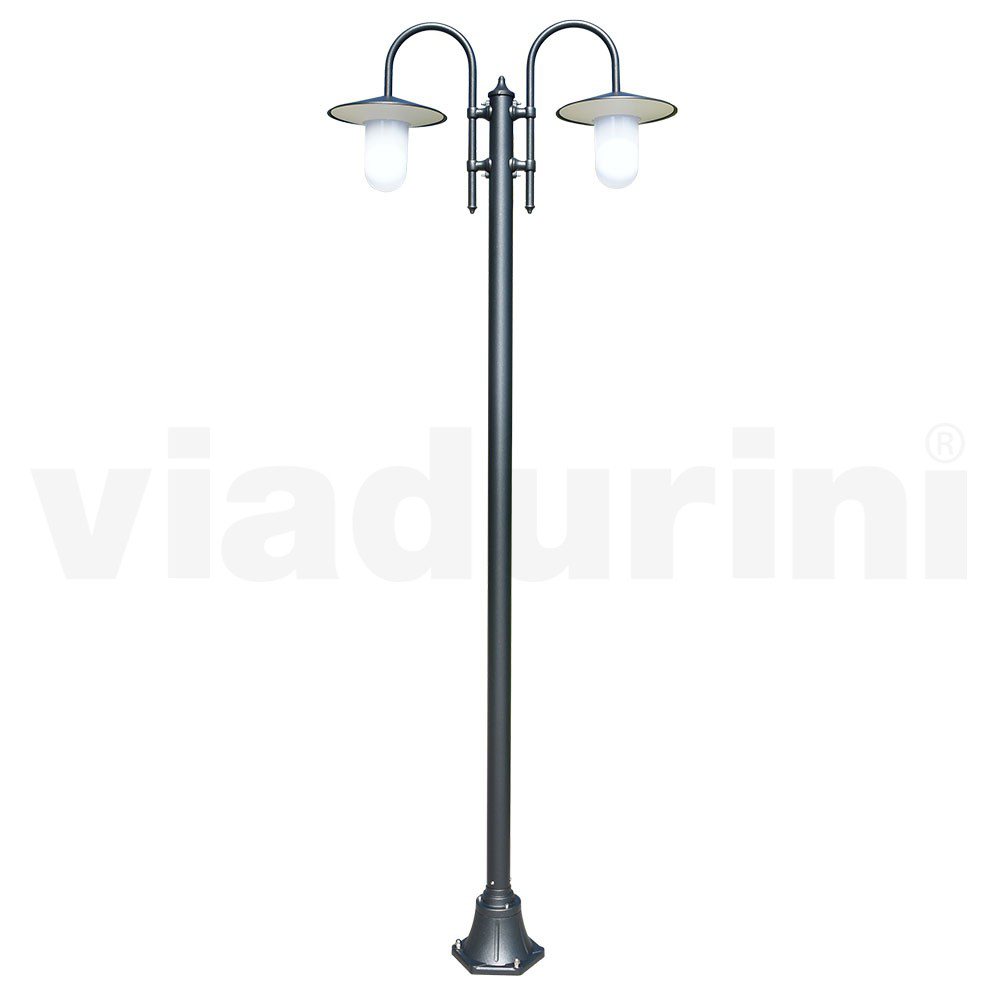 2-flammige Straßenlaterne fürden Außenbereich aus Aluminiumdruckguss, Anthrazitgrau mit Polycarbonat- Diffusor, 100 % Made in Italy . Komplett mit Edelstahlschrauben. Eine Einrichtungslösung , die Funktionalität und Stil vereint,hochwertige Beleuchtung bietet und gleichzeitig die Atmosphäre dank eines Hauch von Eleganz und Charakter vervollständigt.