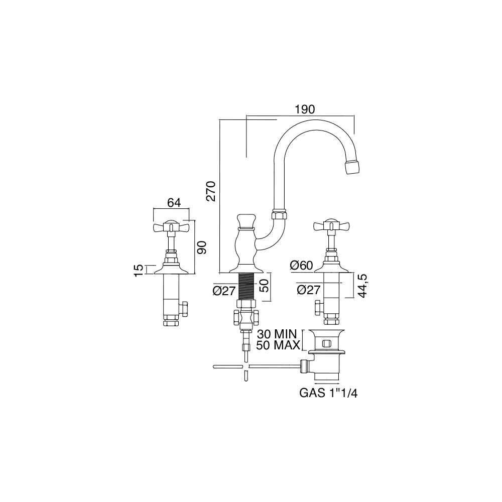 Katerina ist eine raffinierte Waschtischarmatur mit hohem Auslauf, drei Löchern und Ablauf.