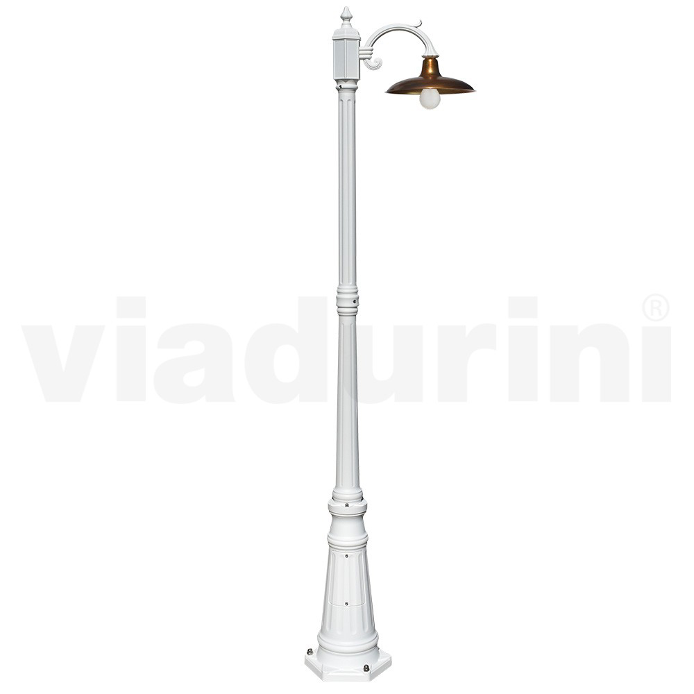 Gartenlaterne mit Struktur aus Aluminiumdruckguss und Diffusor aus natürlichem Messing (Durchmesser 260 mm). Komplett mit Edelstahlschrauben und Silikondichtung für besseren Schutz. Ein Produkt, das zu 100 % in Italien hergestellt wird und sich durch hervorragende Qualität und Vintage-Stil auszeichnet. Seine Ästhetik weist wunderbare und präzise Details auf, die seine Einzigartigkeit unterstreichen und die Laterne perfekt für die Beleuchtung von Gärten, Innenhöfen, Alleen und Gehwegen, aber auch von Objekträumen wie Bars und Restaurants mit Persönlichkeit machen.