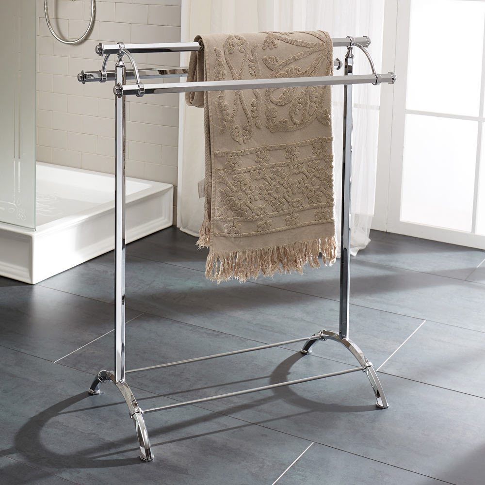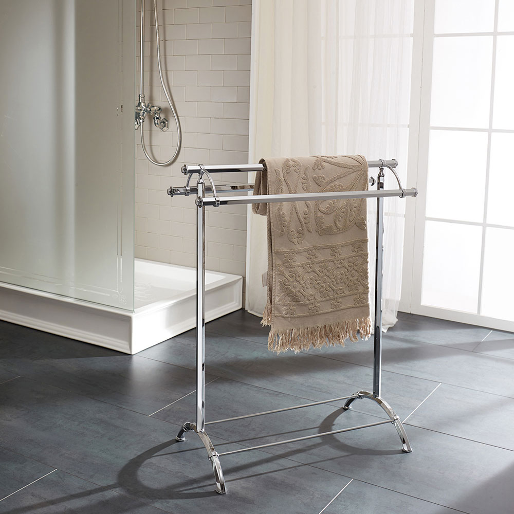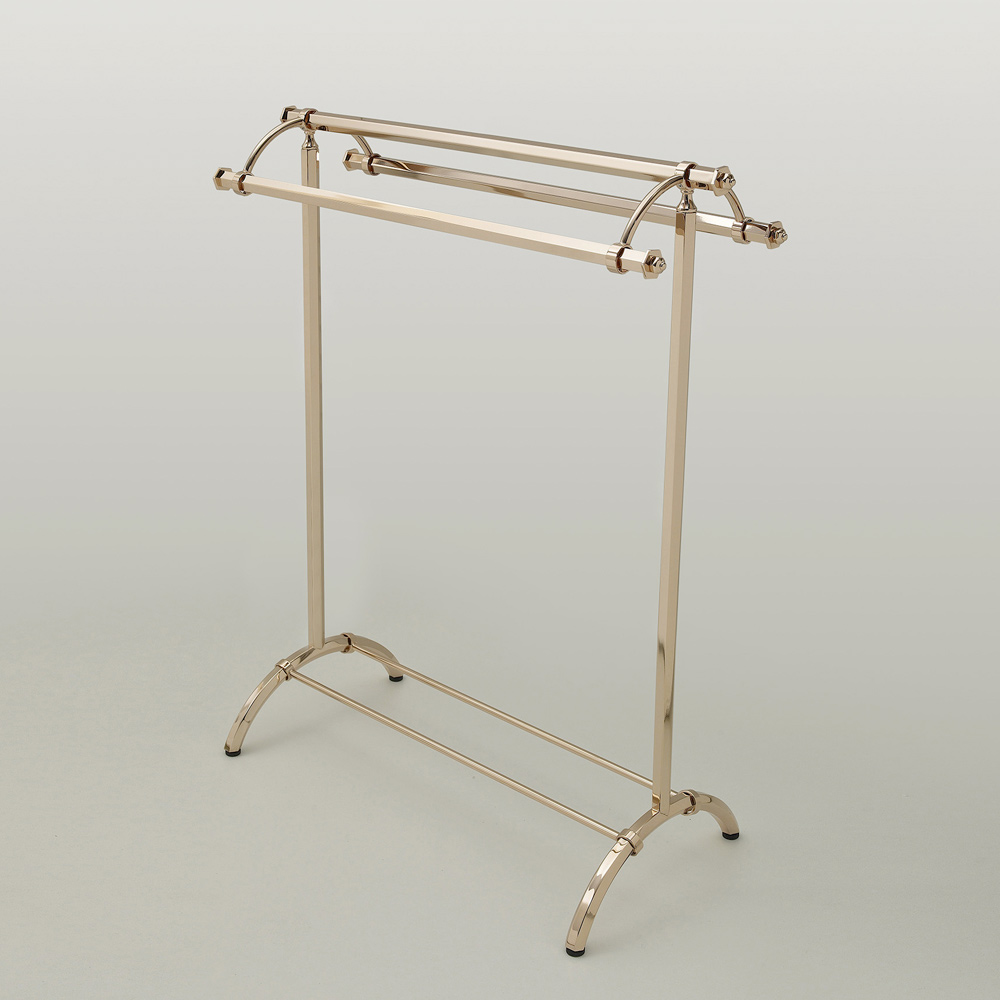 Aristide ist ein funktionaler und geräumiger bodenstehender Handtuchhalter aus Messing.