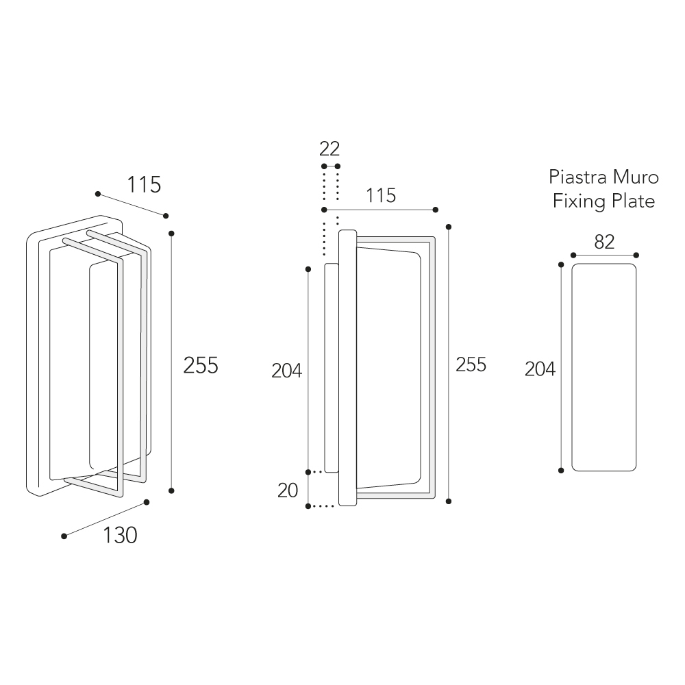 • Wandplatte: 20,4 × 8,2 cm