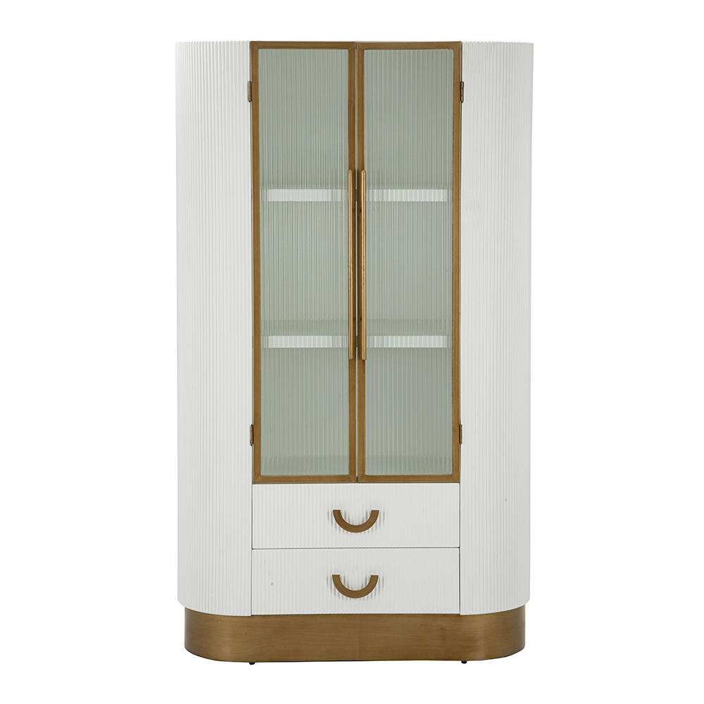 Vitrine aus MDF mit abgerundetem Design, komplett mit 2 Türen und 2 Schubladen.