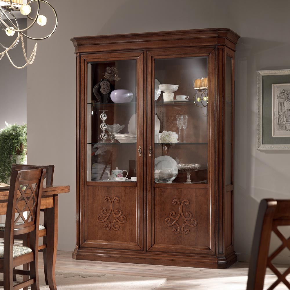 Vitrine aus Holz mit patiniertem Walnuss-Finish und Liliendekor, hergestellt in Italien – Damen