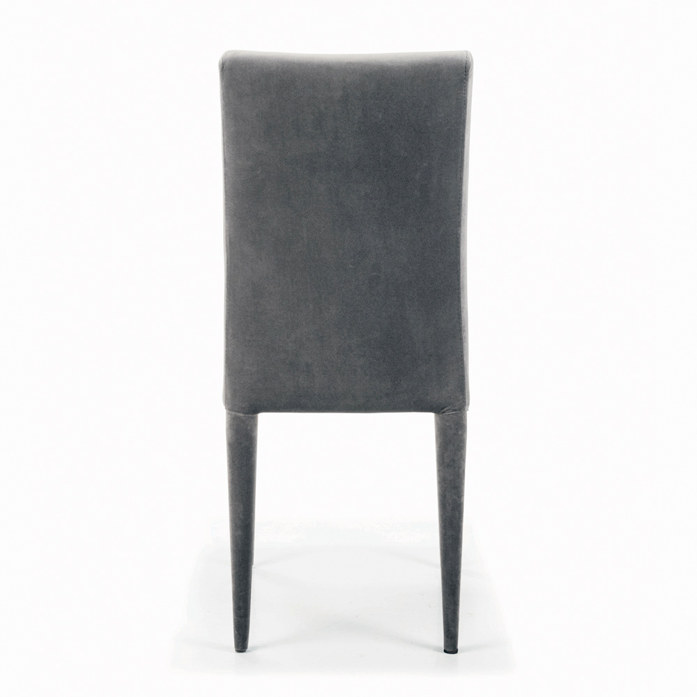Wohnzimmerstuhl mit Stahlkonstruktion, Sitz und Rückenlehne komplett gepolstert und mit Samt bezogen. Wesentlichkeit und Minimalismus sind die besonderen Merkmale dieses Einrichtungsaccessoires im zeitgenössischen Stil , das für diejenigen gedacht ist, die schlichte Einrichtung lieben, aber gleichzeitig eine starke visuelle Wirkung haben möchten . Die ästhetische Leichtigkeit seiner Formen ist seine größte Stärke, die es ihm ermöglicht, sich in jeden Kontext einzufügen und stets einzigartig und originell zu wirken.