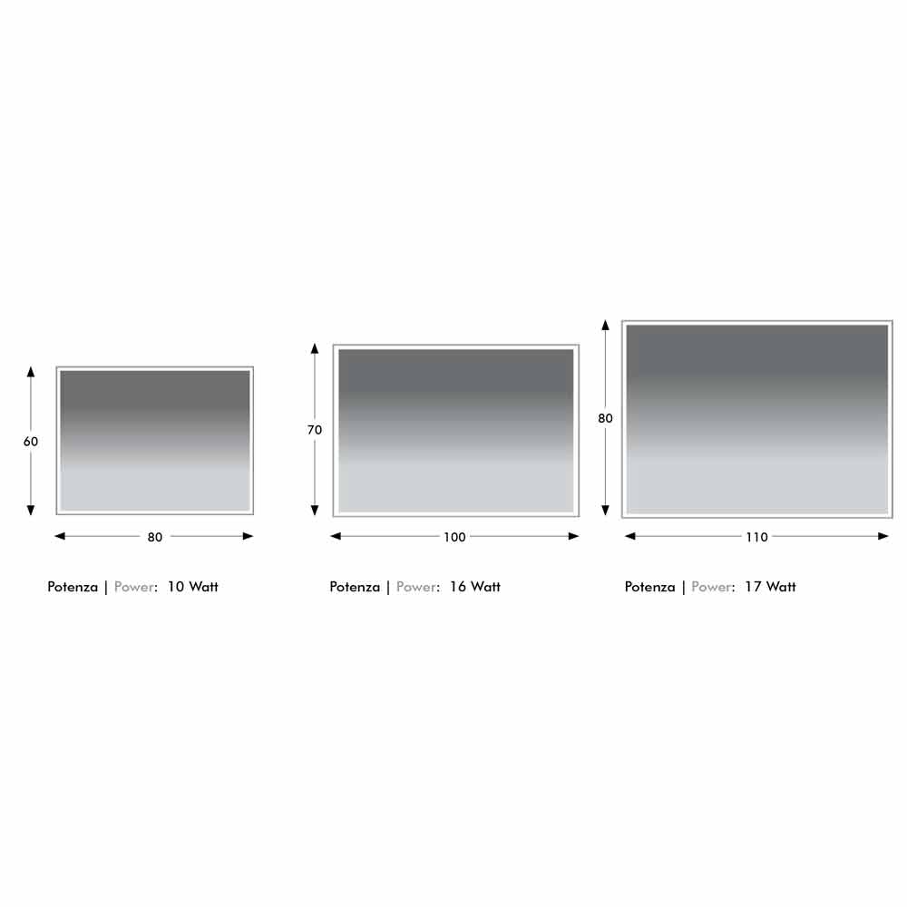 - L 80 x P 3 x H 60 cm (10 W);