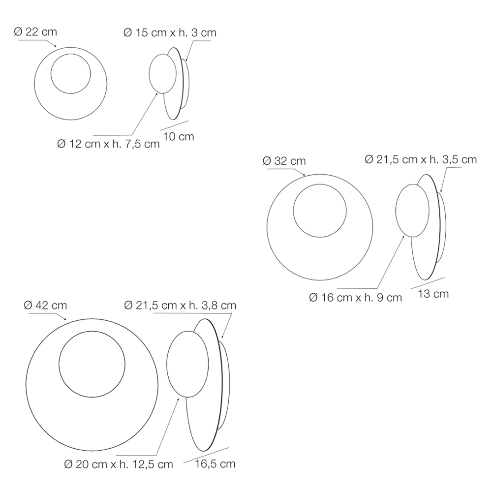 • Durchmesser Deckenrosette 22 cm – Lampendurchmesser 12 x Höhe 7,5 cm – Strukturdurchmesser 15 x Höhe 3 cm – Gesamttiefe 10 cm – DIMMBAR
