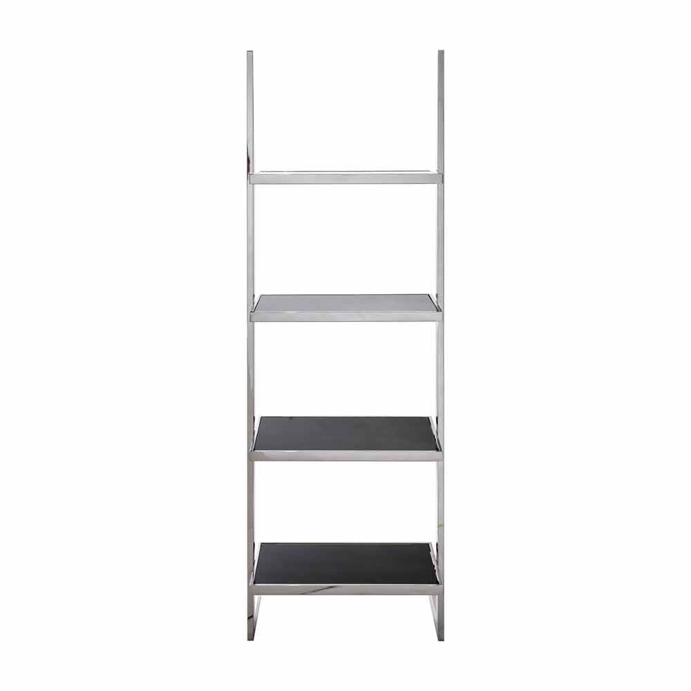 Wand- und Stahlregal im Design 60x180x44cm Tafre Tafre ist ein Bücherregal aus Stahl mit praktischen Regalen aus glänzendem schwarzem Glas, in dem Bücher, CDs und verschiedene Gegenstände aufbewahrt werden können. Dank seines einfachen und geradlinigen Designs kann es für jede Umgebung verwendet werden, vom Wohnbereich über den Schlafbereich bis hin zum Büro.