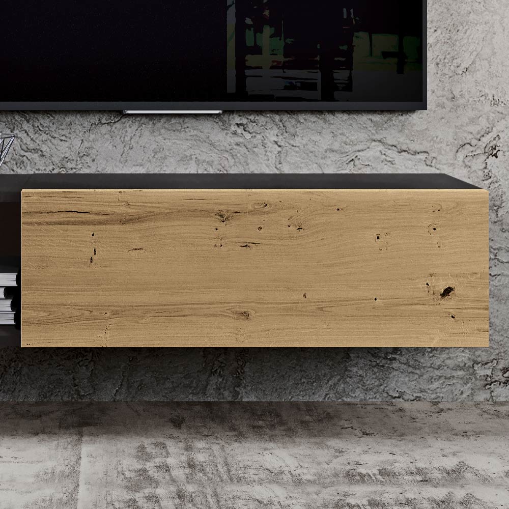 - Nordische Wohnwand aus geknoteter Eiche + Anthrazit: Länge 120 cm x Tiefe 42 cm x Höhe 40 cm