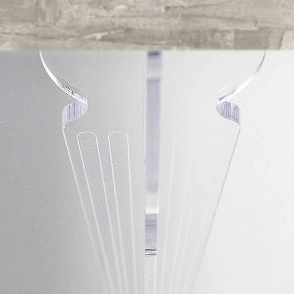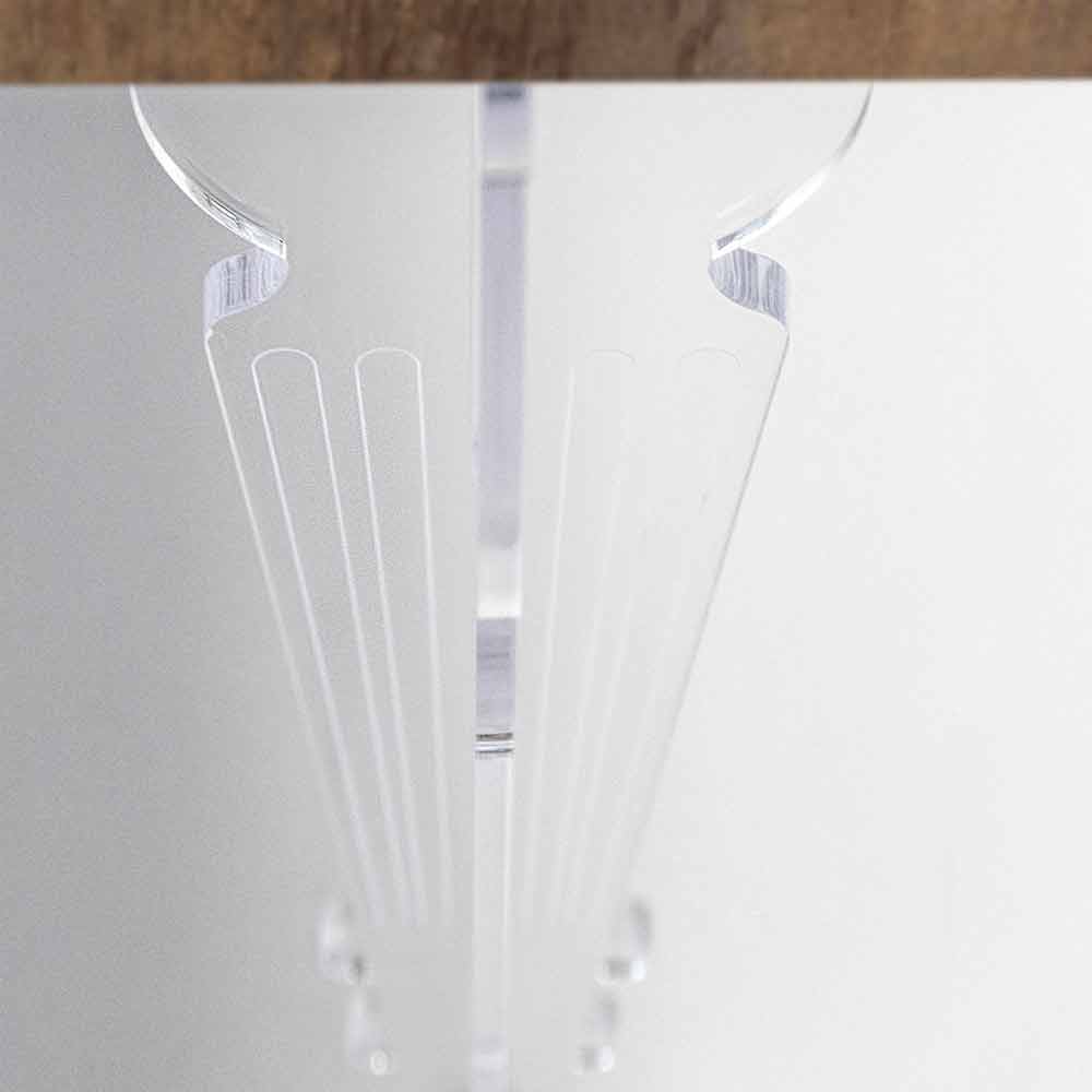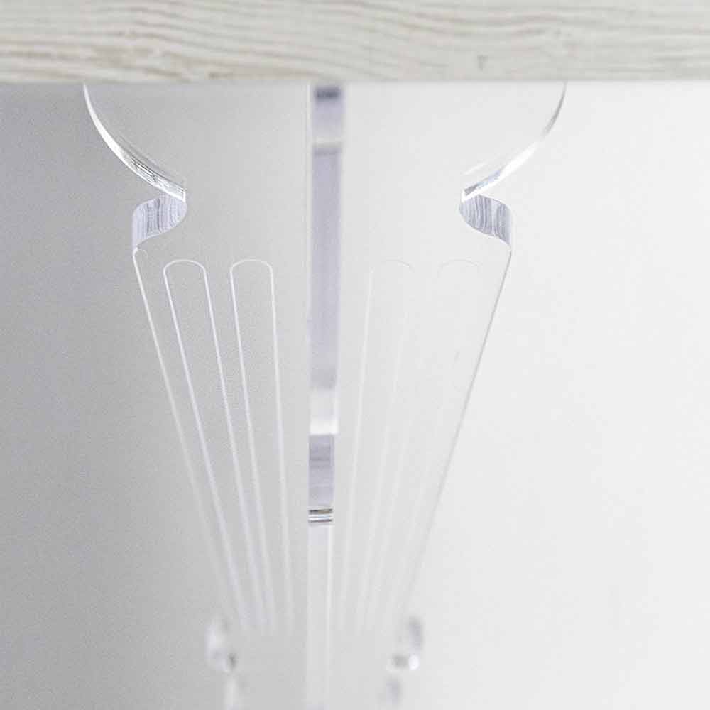 Die gedrehten Beine aus reinem PMMA-Plexiglas aus jungfräulichem Acrylkristallpolymer in Kombination mit der Oberseite aus Melaminholz-Essenz mit einem natürlichen, matt gebürsteten Finish sorgen für einen Effekt von Leichtigkeit und vollständiger Harmonie .