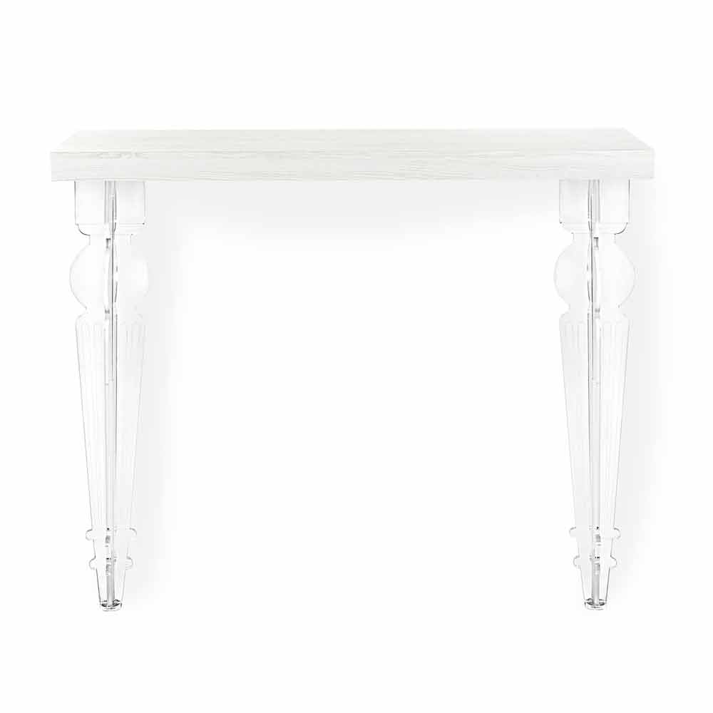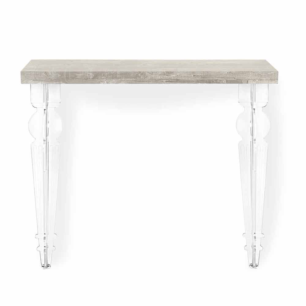 Wandkonsolentisch aus weißem, grauem oder Cortenholz mit gedrehten Beinen aus Plexiglas, Design made in Italy.
