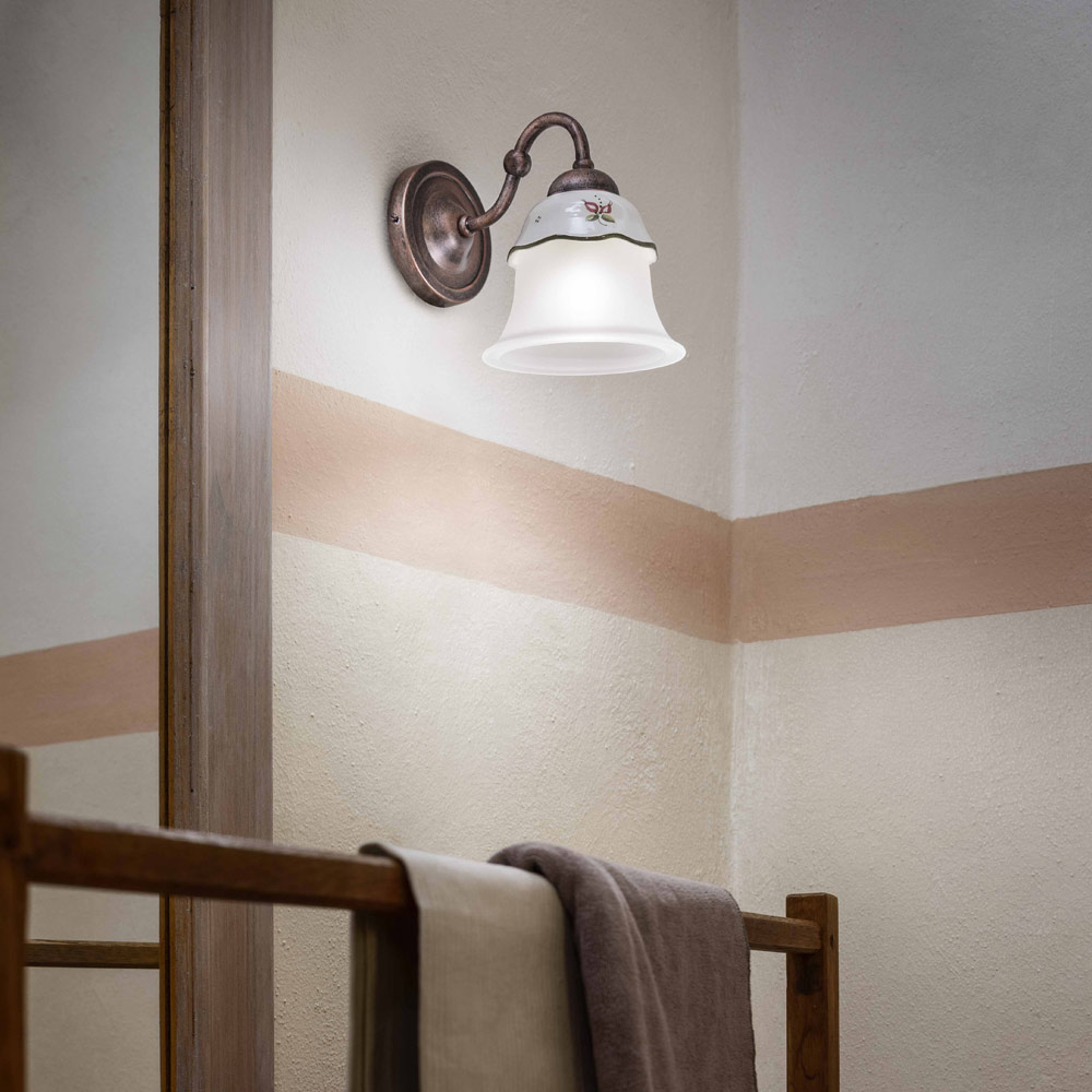 Wandlampe aus glänzender weißer Keramik, komplett von Hand dekoriert, mit Metallstruktur und Glasdiffusor, mit rustikalem Design.