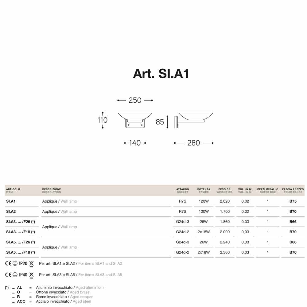 Sockel R7S Leistung 120 W Gewicht 2020 IP 20 Glühbirne nicht enthalten https://www.viadurini.ch//data/prod/img/applique-in-fusione-di-ottone-anticato-e-vetro-allegro.jpg500.35573164InStockVintage WandleuchtenAldo Bernardi000.02015-12-11 08:50:43Made in Italy