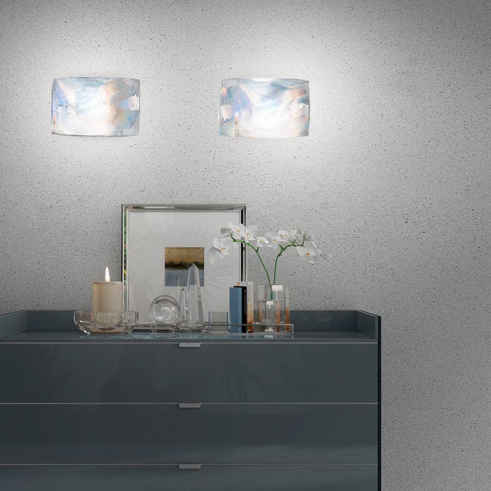 Handgefertigte Wandleuchte aus mundgeblasenem venezianischem Glas mit Iris-Dekor.