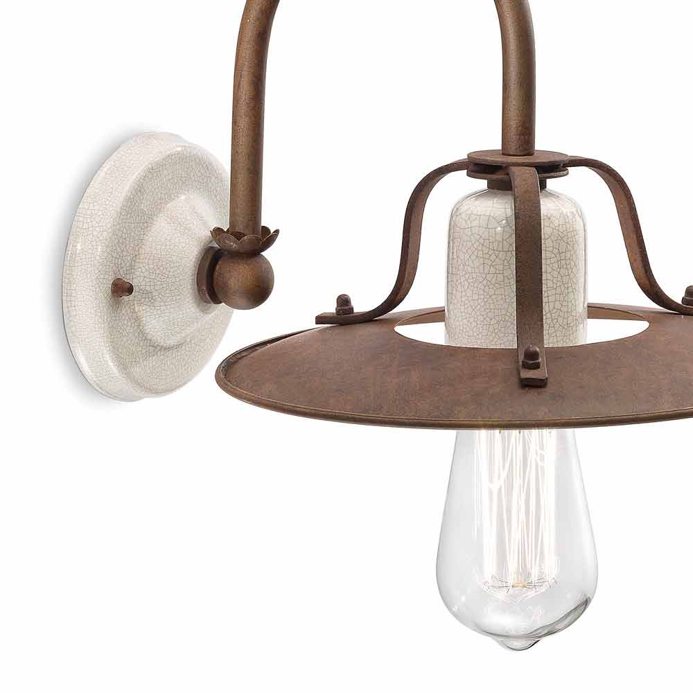 Wandleuchte im Industriestil aus Metall und Keramik von Ferroluce Breite Krone aus matt rostfarbenem Metall und Details, um eine Balance aus vollen und leeren Formen zu vervollständigen, die den Industriestil ergänzen. Es ist vom amerikanischen Landhausstil inspiriert. Lampe mit gedämpften Farben und einem lebendigen Geschmack, sie ist einfach und zeitlos. Reines Licht ohne Abschirmung. Ein Design, das sich dem Luxus widersetzt, aber harmonisch mit ihm koexistiert. Sehen Sie sich die Farbkarte an und geben Sie im entsprechenden Feld den für Sie am besten geeigneten Farbcode an!