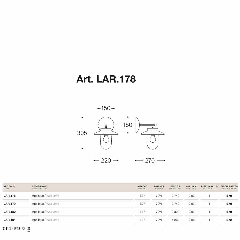 Sockel E27 Leistung 70 W Gewicht 2740 gr IP43 Glühbirne nicht enthalten https://www.viadurini.ch//data/prod/img/applique-la-traviata-in-rame-vetro-e-ottone-anticato.jpg445.01332275InStockVintage WandleuchtenAldo Bernardi000.02015-12-11 08:50:42Made in Italy