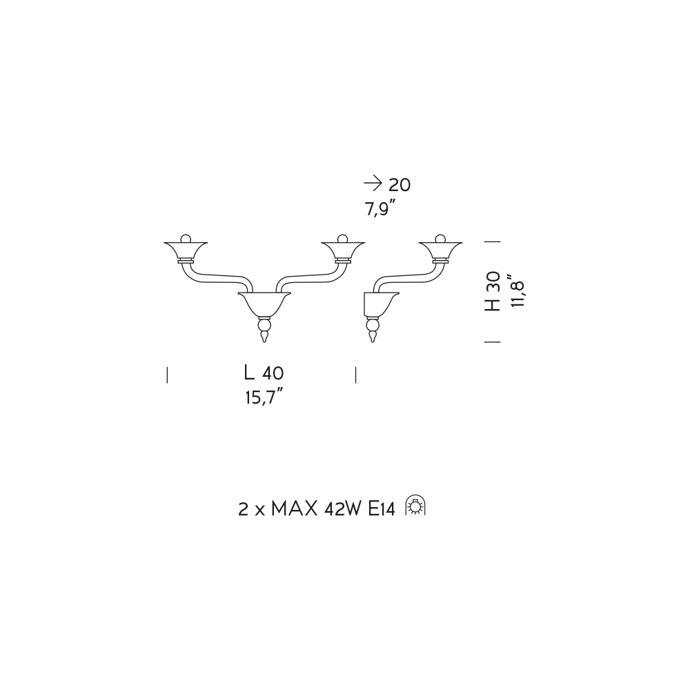 Leuchtmittel (nicht enthalten) : 2 x MAX 42W E14