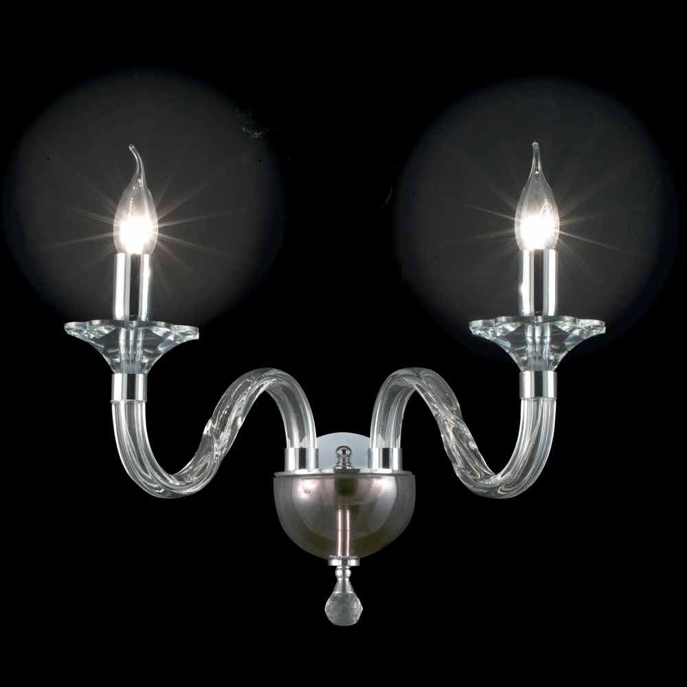 Wandlampe mit zwei Leuchten in Ivy Glas und Kristall, hergestellt in Italien Applikation aus transparentem Glas, handgefertigt mit Kristalldekorationen. Chrome beendet. Leuchtmittel: 2 x E14 40W Glühbirnen nicht enthalten.