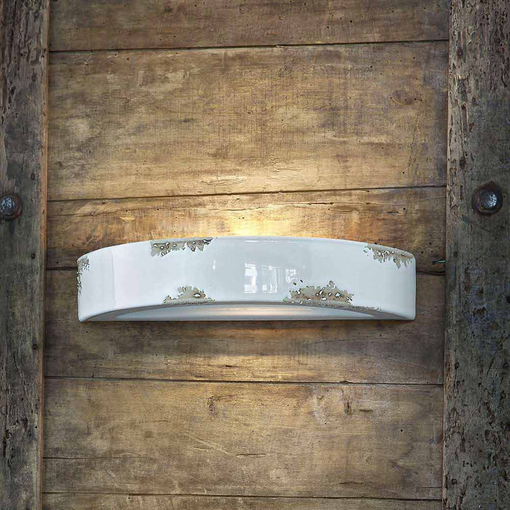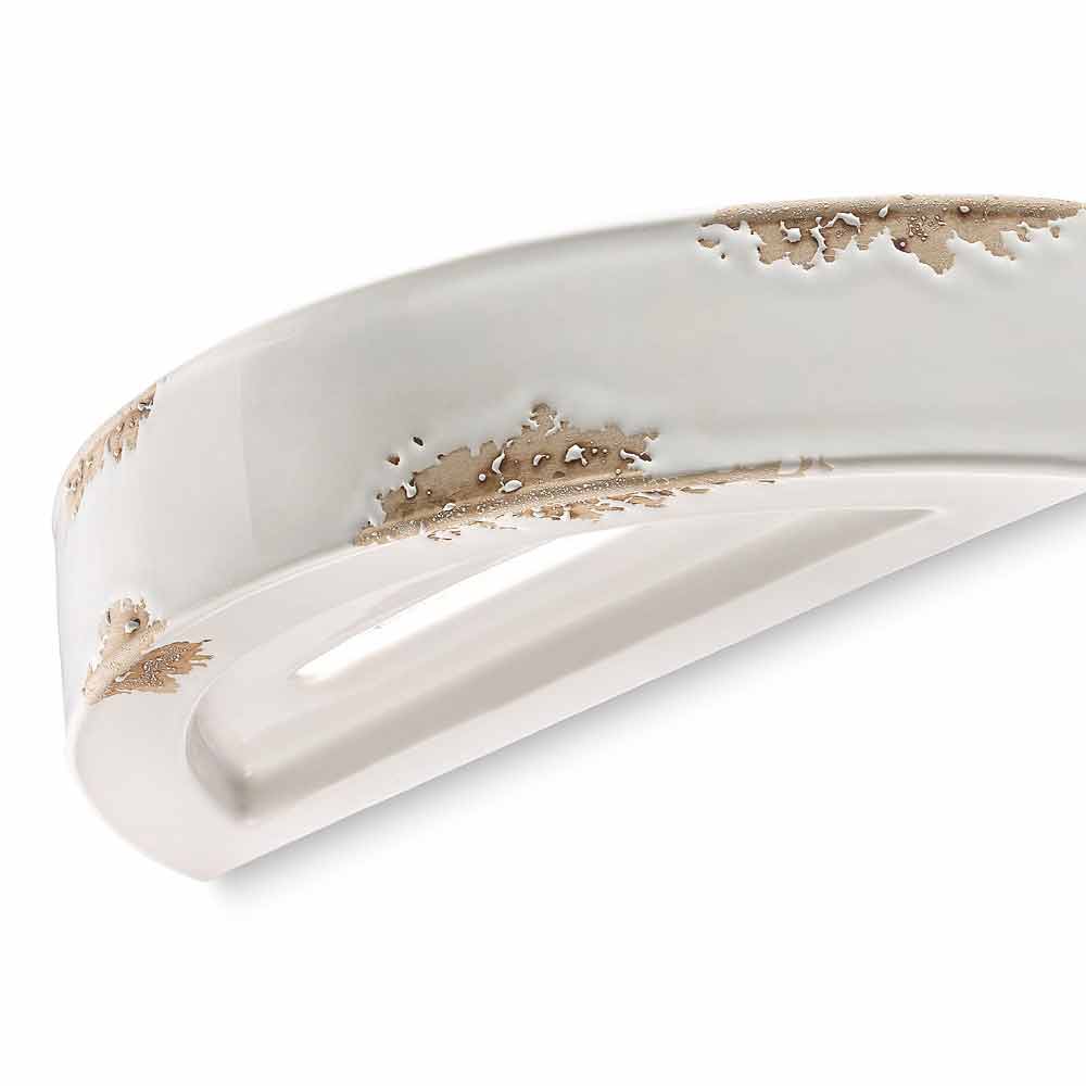 Helen Ferroluce Vintage Halbmond-Wandleuchte aus Keramik. Helen ist eine fantastische Wandleuchte, die von erfahrenen Handwerkern in Italien aus Keramik handgefertigt wird. Helen ist eine minimalistische und funktionale Applikation, die sich durch eine Halbmondform aus elegant geschwungenen Linien auszeichnet. Die Besonderheit dieser Lampe liegt in der Verarbeitung ihrer äußeren Oberfläche, die so dekoriert ist, als hätte die Zeit ihren Weg gezeichnet. Die Reproduktion der Erosion der Zeit in Kombination mit den glänzenden Oberflächen verleihen dieser Wandleuchte diesen zusätzlichen Wert und machen sie perfekt für die Beleuchtung von Gemälden und Spiegeln. Ideal für Umgebungen mit urbanem Stil und Vintage-Flair. Helen besteht aus einem essentiellen und eleganten Design, das die Wesentlichkeit der Verwendung bewahrt und mit einer feinen Balance zwischen Formen und Tönen beruhigt. Kleine Details für große Wirkung mit antikem Flair! Lampe in verschiedenen Ausführungen erhältlich. Überprüfen Sie die Farbkarte und geben Sie den Code der gewünschten Ausführung in das entsprechende Feld ein!