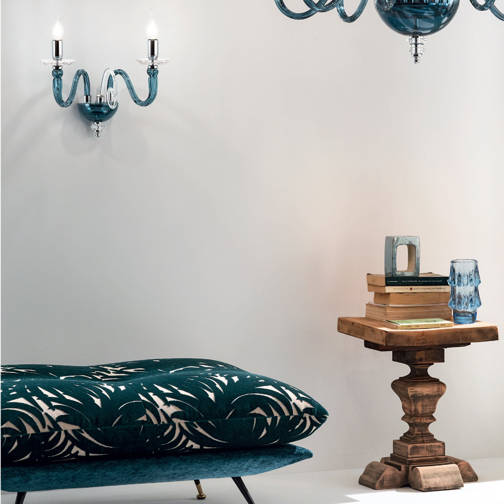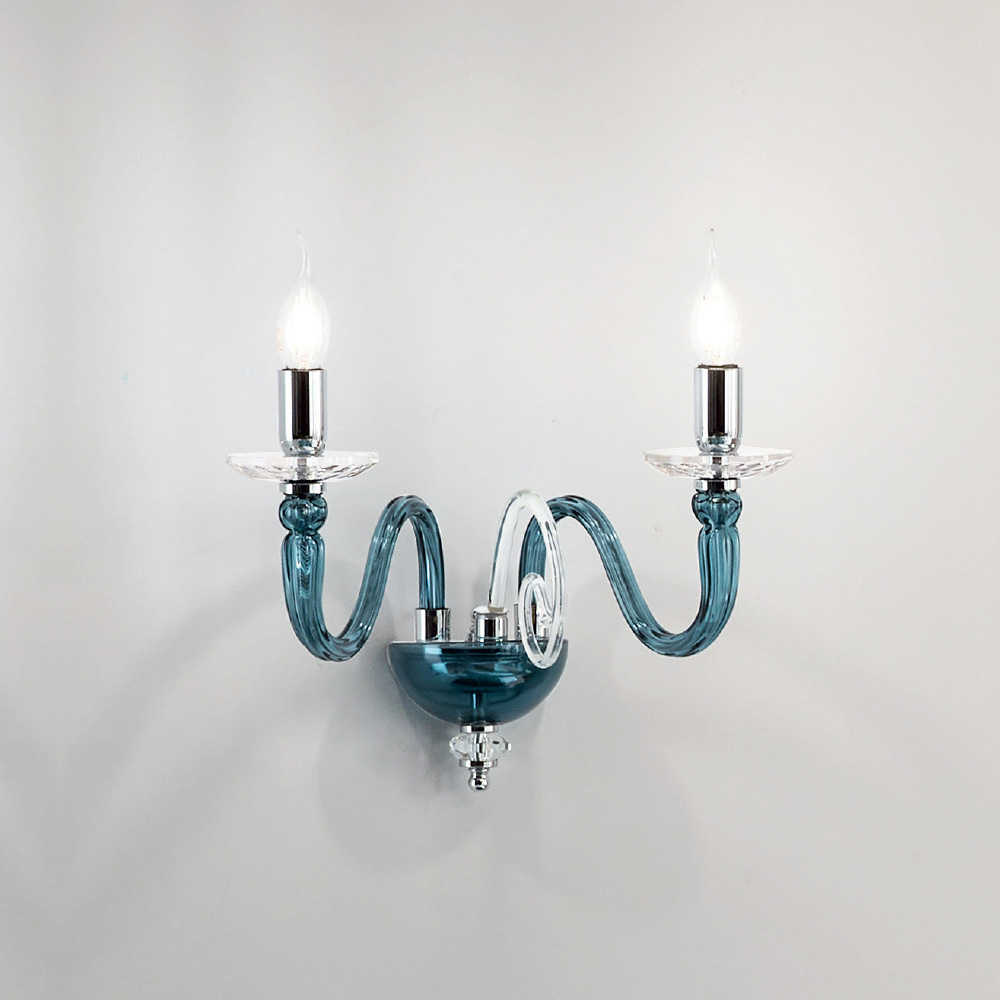Hochwertige handgefertigte 2-flammige Wandlampe aus blaugrünem Glas, hergestellt in Italien.