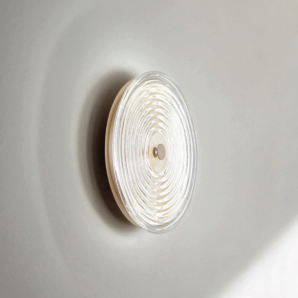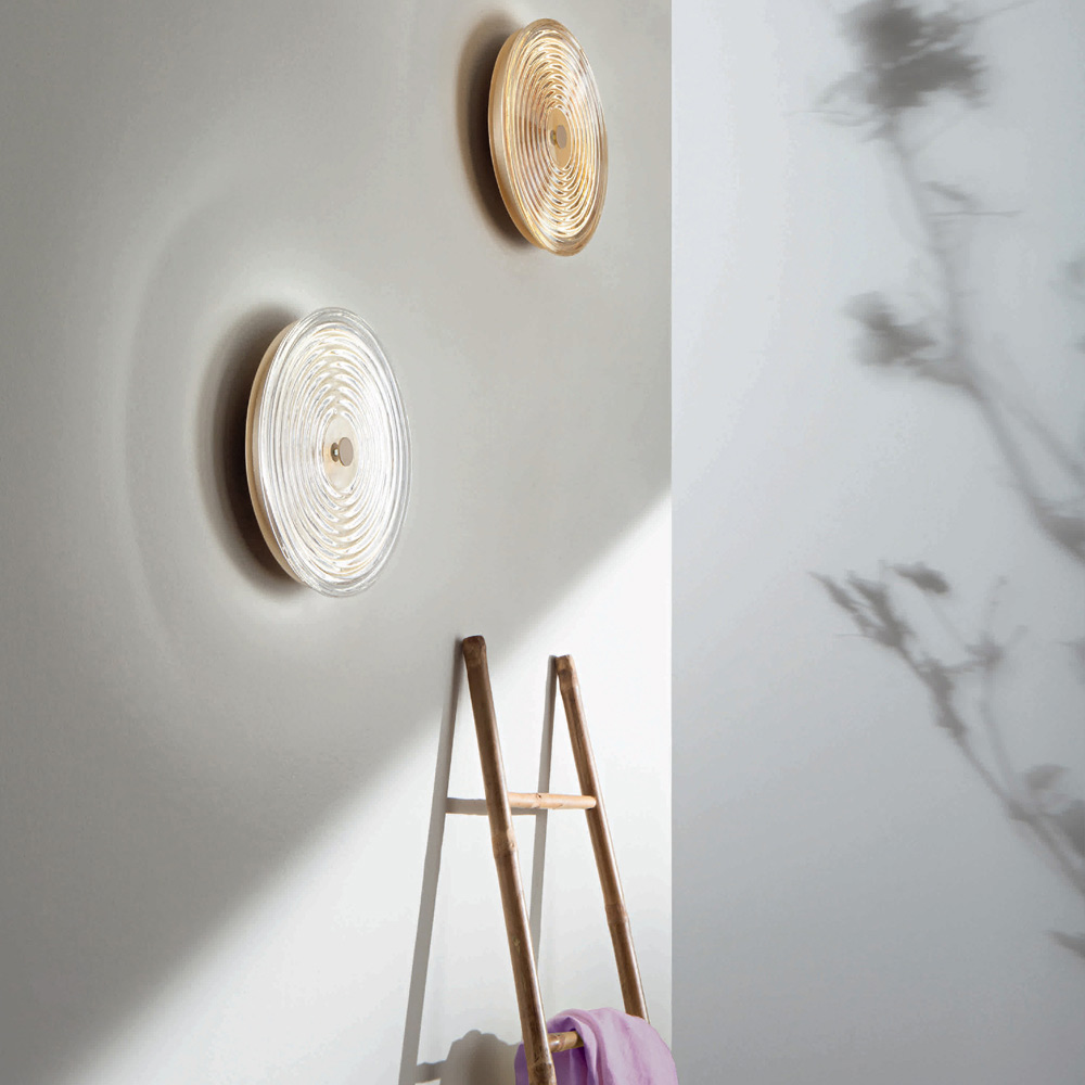 Komplett in Italien hergestellteWandleuchte aus goldfarben lackiertem Metall,mit konzentrischen Linien verziertes Glas mit LED -Licht. Ziel dieses Produkts ist es, die Tradition durch einen zeitgenössischen Ansatz aufzuwerten, bei dem Stil, Klasse und Innovation zu neuen Designformeln verschmelzen, um jede Umgebung mit Geschmack und Charakter einzurichten und zu beleuchten. Stärken sind die Besonderheit der Formen , die Qualität der Materialien und die Einzigartigkeit der Lichtquelle .