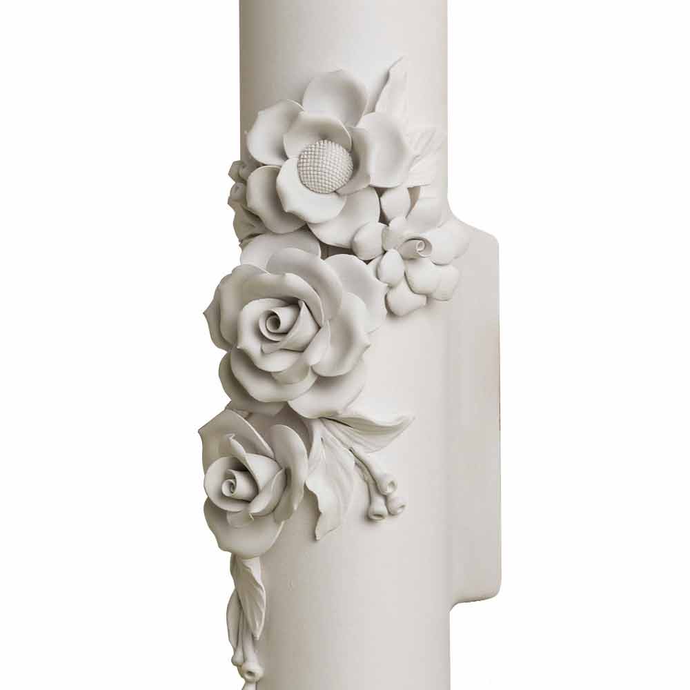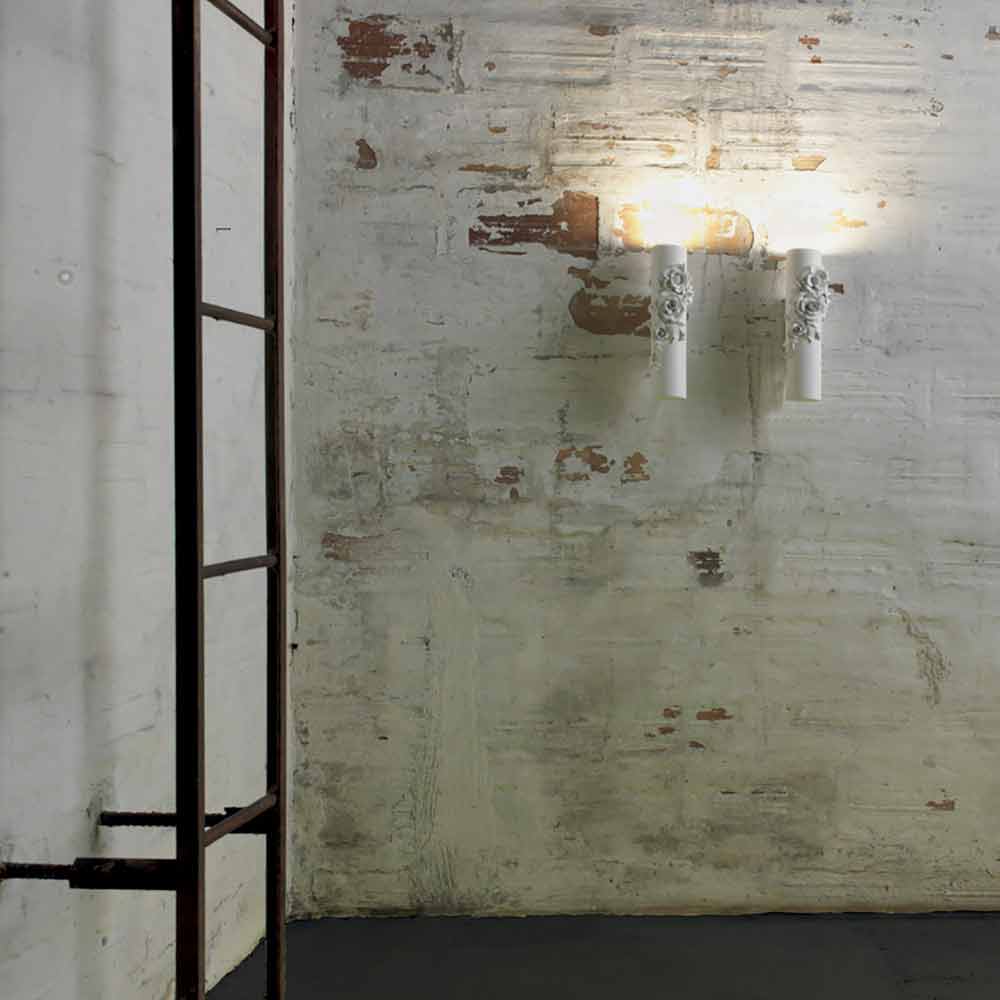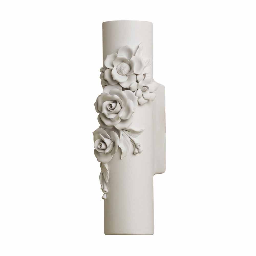 Der einfache Keramikzylinder ist in einen Blumenwind gewickelt, der durch die Reinheit der Stillinien und des Materials hervorgehoben wird. Es gibt keine Exzesse, das perfekt ausbalancierte Design kann somit in verschiedene Kontexte eingefügt werden, von den modernsten für einen Hauch von purer Eleganz bis zu den klassischsten und industriellsten, für eine zeitgemäße Atmosphäre und einen Kontrast, der begeistert.