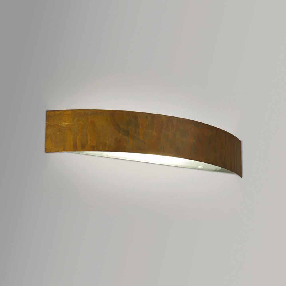 Wandlampe mit oxidierter Messingstruktur. Erhältlich in zwei Größen in der runden oder quadratischen Form. Diffusor aus gehärtetem Glas für direkte und indirekte Lichtemission. Blandine ist auch in kundenspezifischen Farben erhältlich. Fordern Sie ein Angebot an: clienti@viadurini.it .