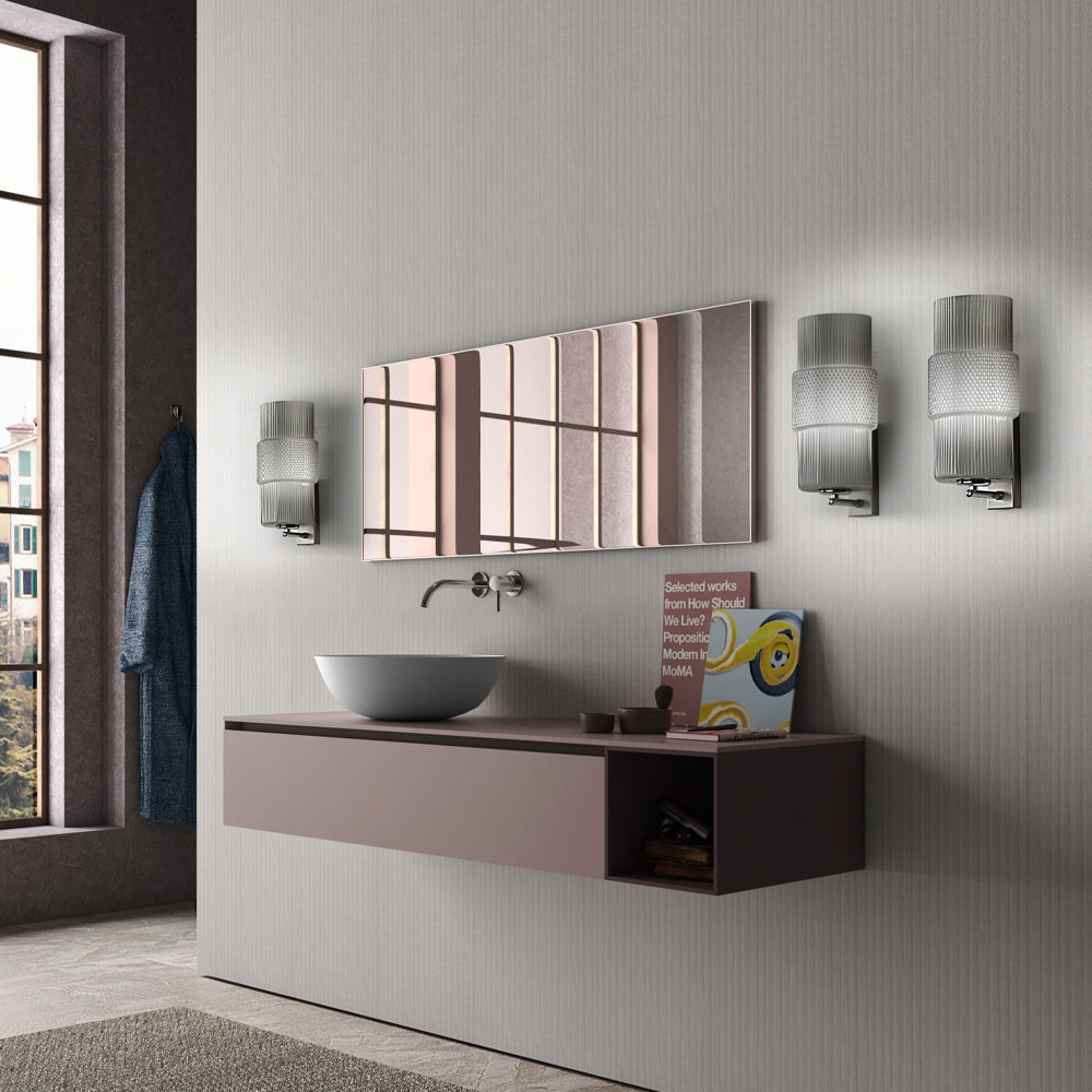 Ein kleines und elegantes Meisterwerk der Kunst aus geschichtetem oder transparentem Glas mit Streifenverarbeitung , das der Umgebung einen Hauch von raffinierter Eleganz verleiht, zusammen mit Lichtspielen mit faszinierender visueller Wirkung.