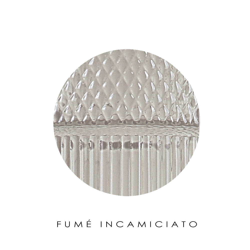 Rigata- Verarbeitung: Verarbeitungstechnik, bei der eine Form mit kleinen Linien und Rautengravur verwendet wird, in die das Glas geblasen wird, um einen wunderbaren visuellen und haptischen Effekt zu erzielen.