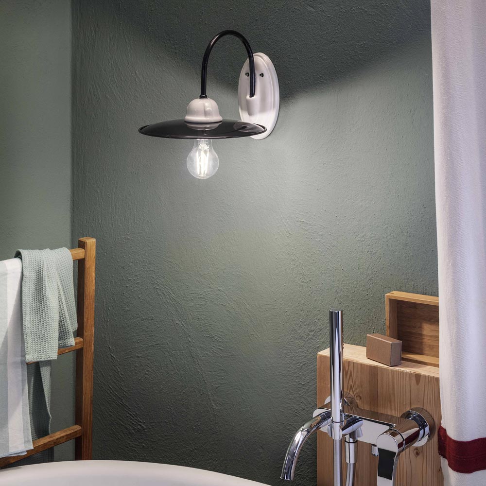 Weiße, glänzende Keramik-Wandlampe im rustikalen Stil.