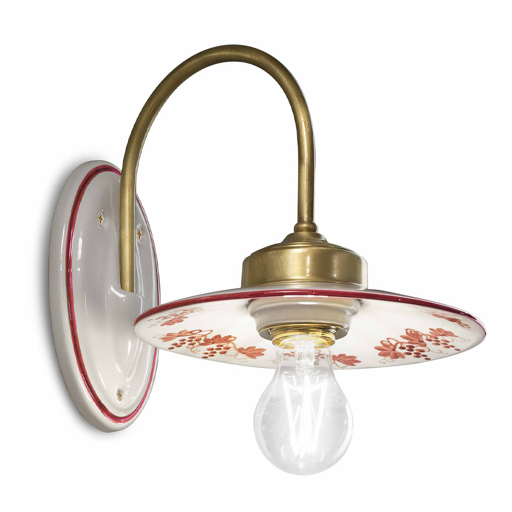 Handbemalte Wandleuchte aus Eisen und Keramik, Vintage-Design, hergestellt in Italien von Ferroluce.