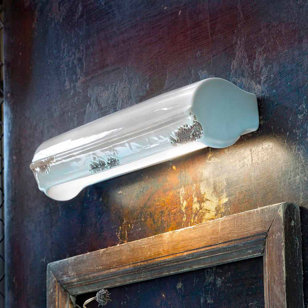 Ethel Ferroluce handgefertigte Vintage-Wandleuchte aus glänzender Keramik Ethel ist eine fantastische Wandleuchte, die von erfahrenen Handwerkern in Italien aus Keramik handgefertigt wird. Ethel ist eine minimalistische und funktionale Applikation, die sich durch eine rechteckige Form und elegante quadratische Linien auszeichnet. Die Besonderheit dieser Lampe liegt in der Verarbeitung ihrer äußeren Oberfläche, die so dekoriert ist, als hätte die Zeit ihren Weg gezeichnet. Die Reproduktion der Erosion der Zeit in Kombination mit den glänzenden Oberflächen verleihen dieser Wandleuchte diesen zusätzlichen Wert und machen sie perfekt für die Beleuchtung von Gemälden und Spiegeln. Ideal für Umgebungen mit urbanem Stil und Vintage-Flair. Ethel besteht aus einem essentiellen und eleganten Design, das die Wesentlichkeit der Verwendung bewahrt und mit einer feinen Balance zwischen Formen und Tönen beruhigt. Kleine Details für große Wirkung mit antikem Flair! Lampe in verschiedenen Ausführungen erhältlich. Überprüfen Sie die Farbkarte und geben Sie den Code der gewünschten Ausführung in das entsprechende Feld ein!