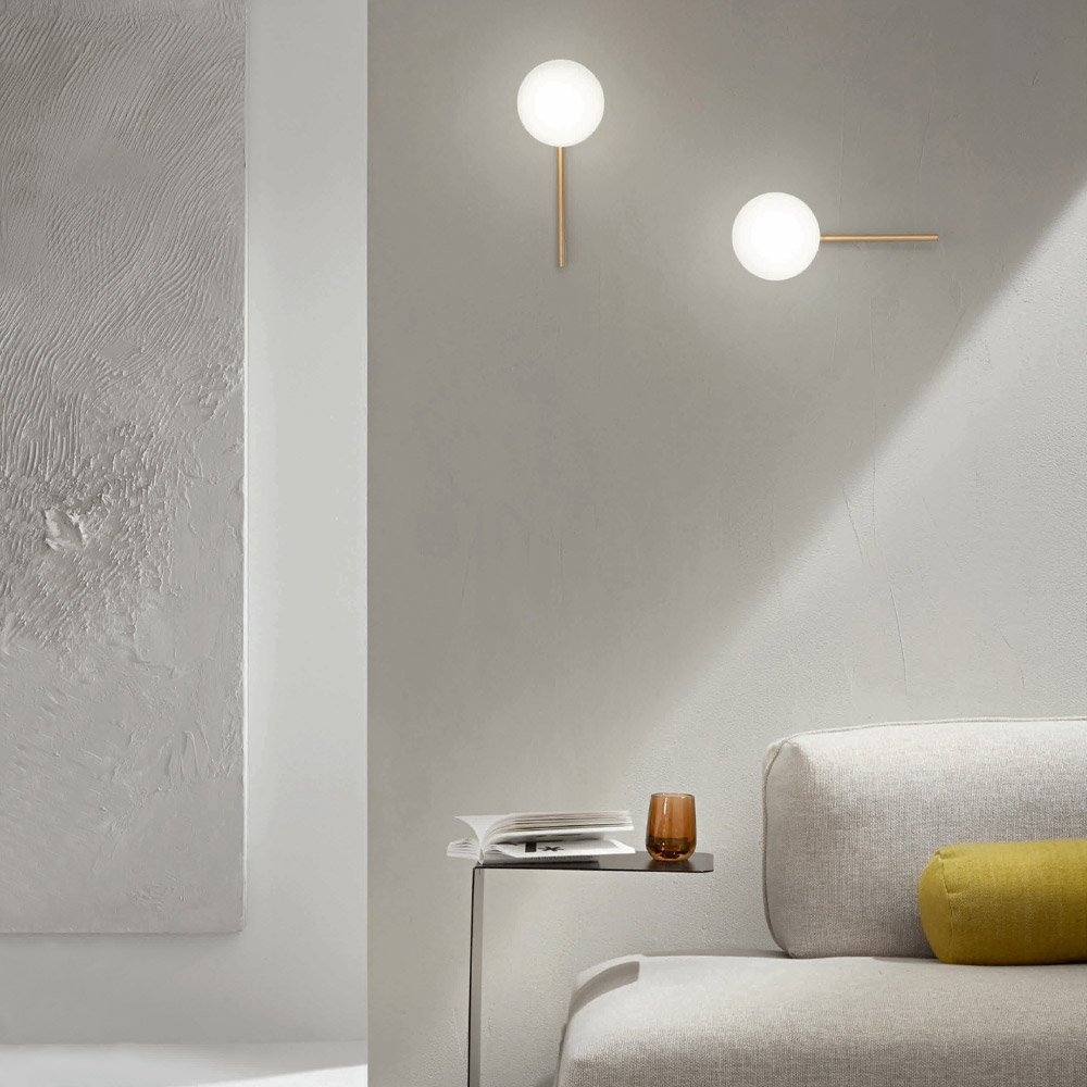 Komplett in Italien hergestellteWandleuchte aus lackiertem Metall und mundgeblasenem Glas mit Goldfinish und LED-Licht. Ziel dieses Produkts ist es, die Tradition durch einen zeitgenössischen Ansatz aufzuwerten, bei dem Stil, Klasse und Innovation zu neuen Designformeln verschmelzen, um jede Umgebung mit Geschmack und Charakter einzurichten und zu beleuchten. Stärken sind die Besonderheit der Formen , die Qualität der Materialien und die Einzigartigkeit der Lichtquelle .