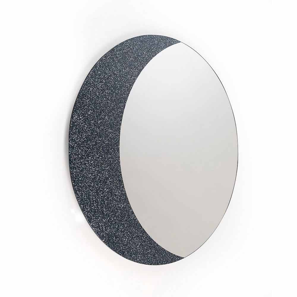 Runder Spiegel Aldo im modernen Design, hergestellt in Italien, Glitzer und Glas. Wandspiegel, modernes Design. Aldo wurde vom Designer Giorgio Ragazzini entworfen und ließ sich von den Planeten des Sonnensystems inspirieren. 100 % Hergestellt in Italien.