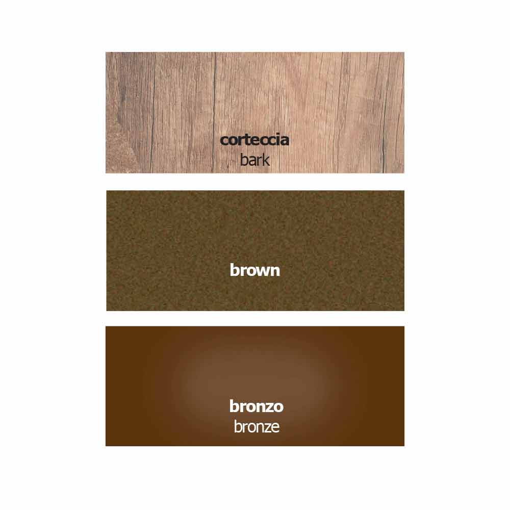 Abgehängter Schreibtisch mit Wandbefestigung, hergestellt in Italien, mit Platte aus Melamin mit Rindenfinish mit Kabelloch, Struktur aus braun lackiertem Metall und abnehmbarer vertikaler Platte aus bronzefarbenem Plexiglas . Es ist auch komplett mit einer praktischen ausziehbaren Schublade, die zur Struktur passt.