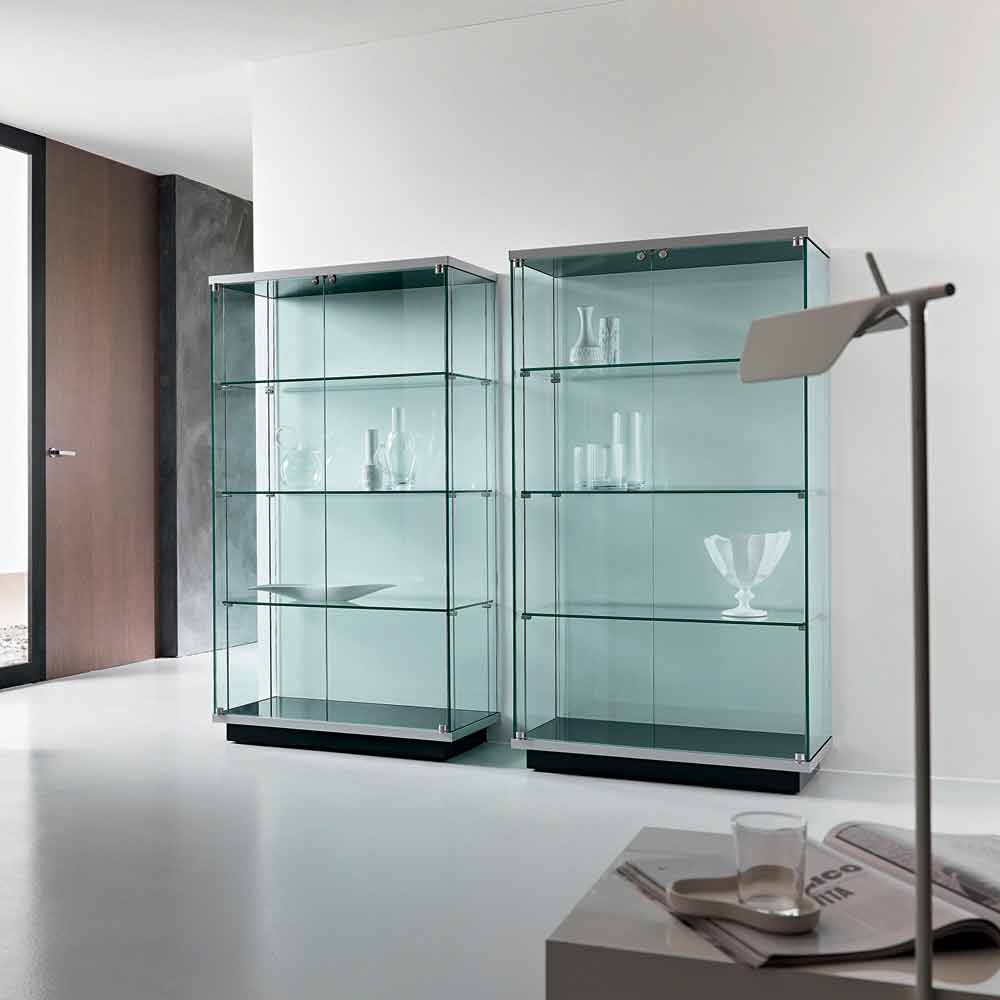 Vitrine aus gehärtetem Glas mit Schloss, hohe Qualität made in Italy.