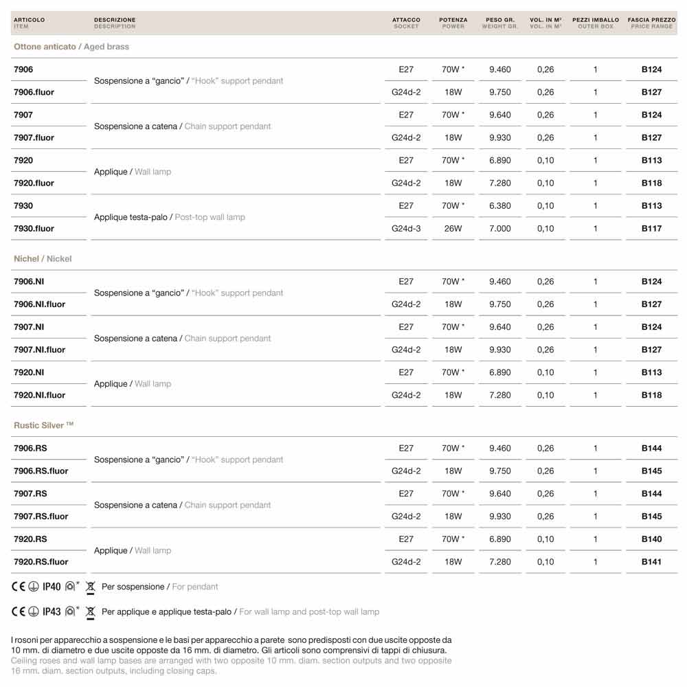 Sockel E27 Leistung 70 W Gewicht 6890 gr IP43 Glühbirne nicht enthalten