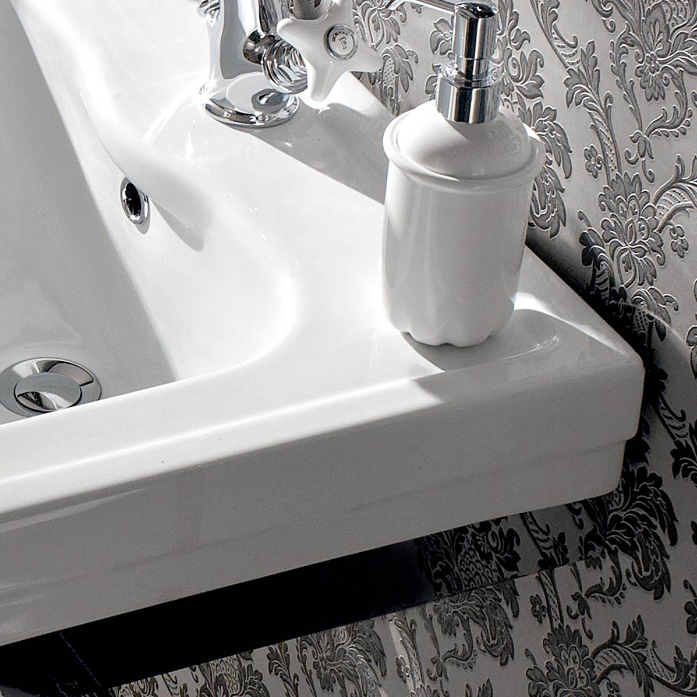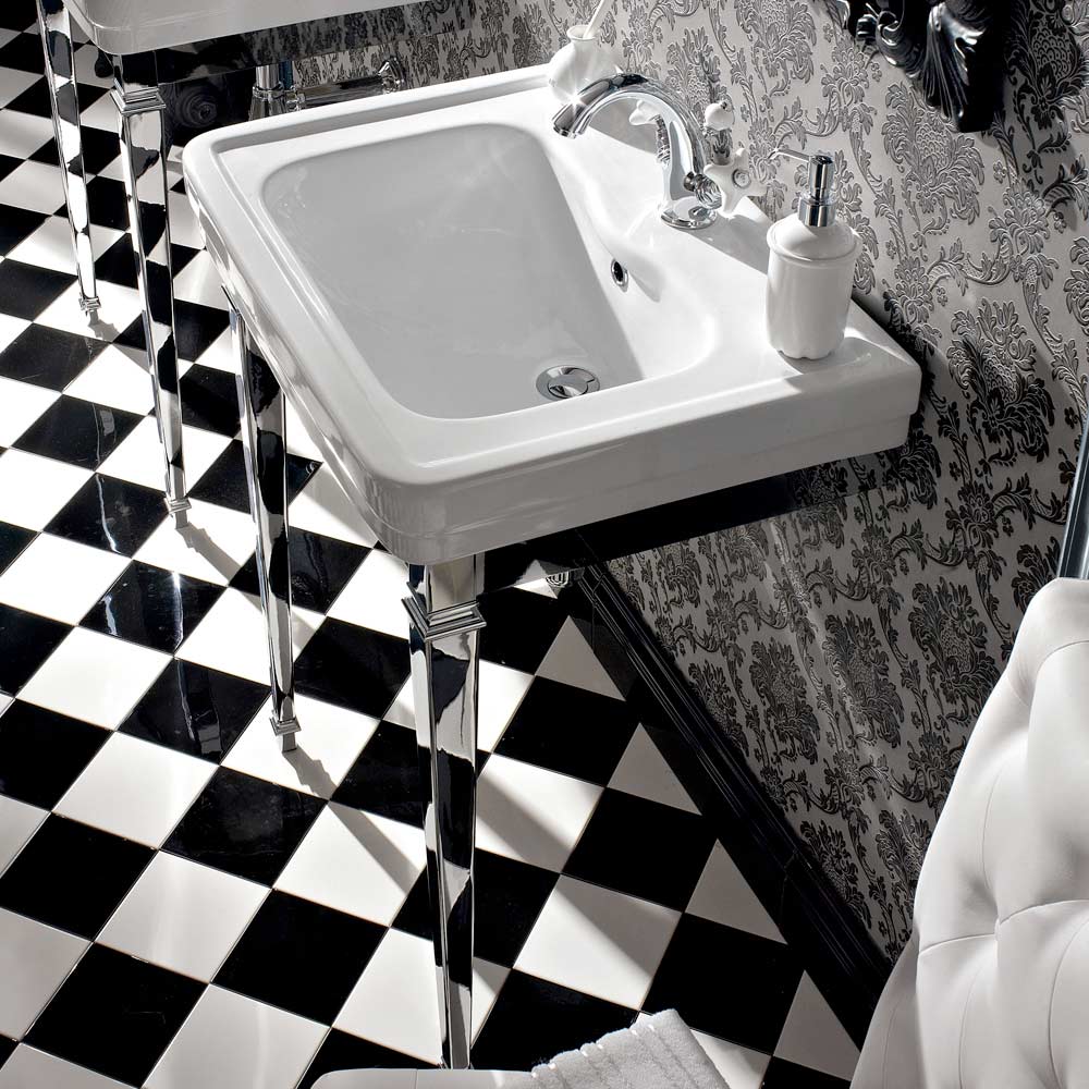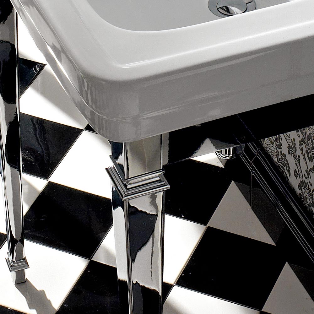 Der Stil dieser Konsolenspüle kann als neoklassisch definiert werden: Design und Retro-Linien werden mit Materialien mit modernerem Charakter wie Metall kombiniert.