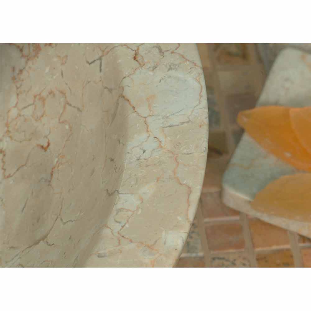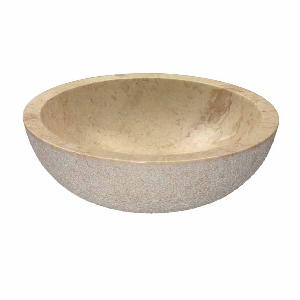 rundes Aufsatzwaschbecken aus Naturstein - beige - mit unbelassener rauher Oberfläche in der Außenseite Pai Modell