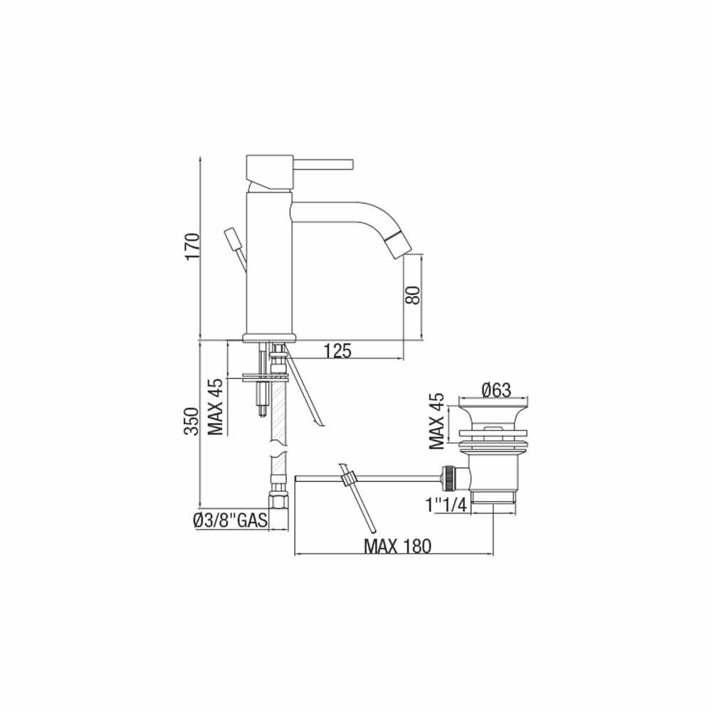 Moderner Waschbeckenmischer in verchromter Ausführung Made in Italy.