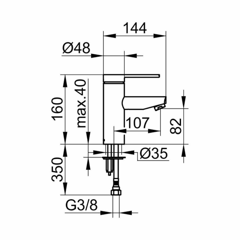 Moderner Einhebelmischer 9 cm hoch für Badwaschbecken aus Messing mit Chromoberfläche.